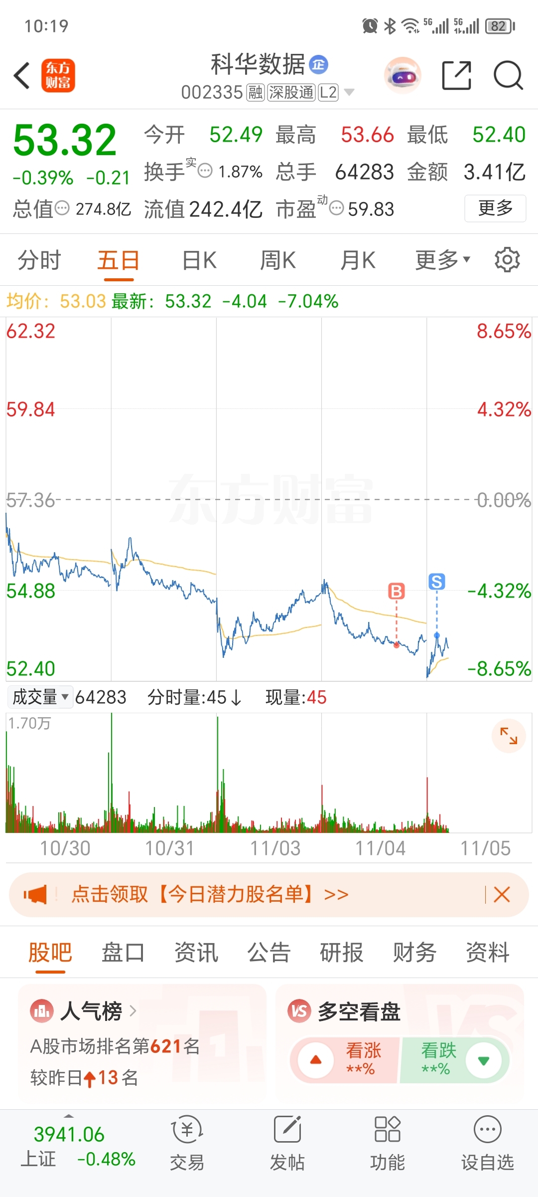 $科华数据(SZ002335)$ 赚包烟钱跑了,在前期底部附近震荡概率较大,低吸高抛还是有点搞头的。