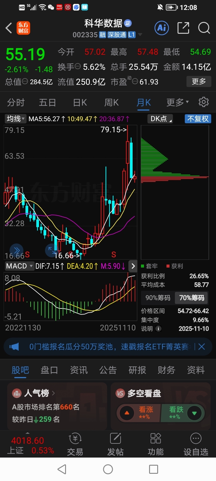 今晚美股大科技暴涨了,科华数据自高点79.15元,回调五周1个半月至今日55.19元,应该是40%左右了,看月线,周线,日线筹码图,主力机构筹码还在底部,明天开始逢低就是布局低吸机会。