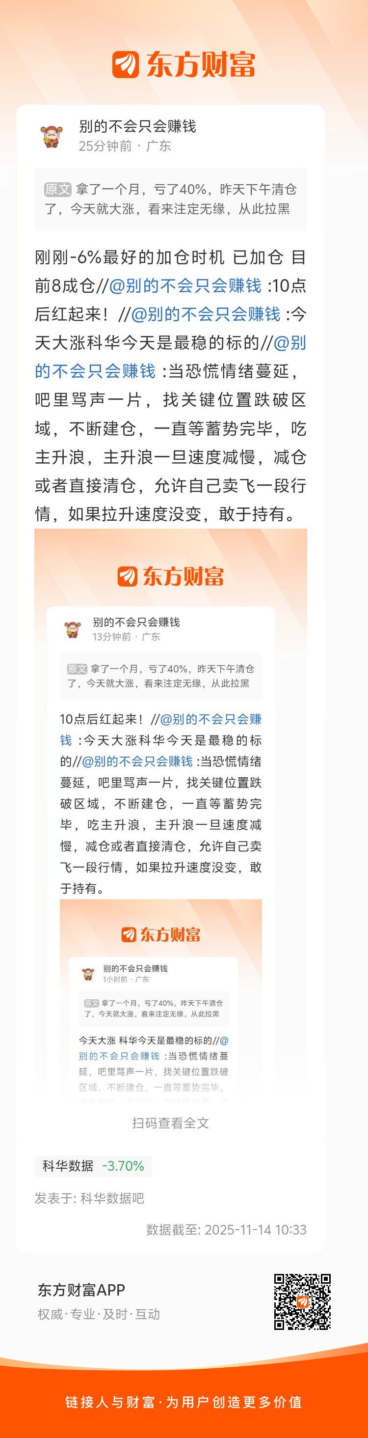 温馨提示: 1.根据《证券法》规定,禁止编造、传播虚假信息或者误导性信息,扰乱证券市场;2.用户在本社区发表的所有资料、言论等仅代表个人观点,与本网站立场无关,不对您构成任何投资建议。用户应基于自己的独立判断,自行决定证券投资并承担相应风险。《东方财富社区管理规定》