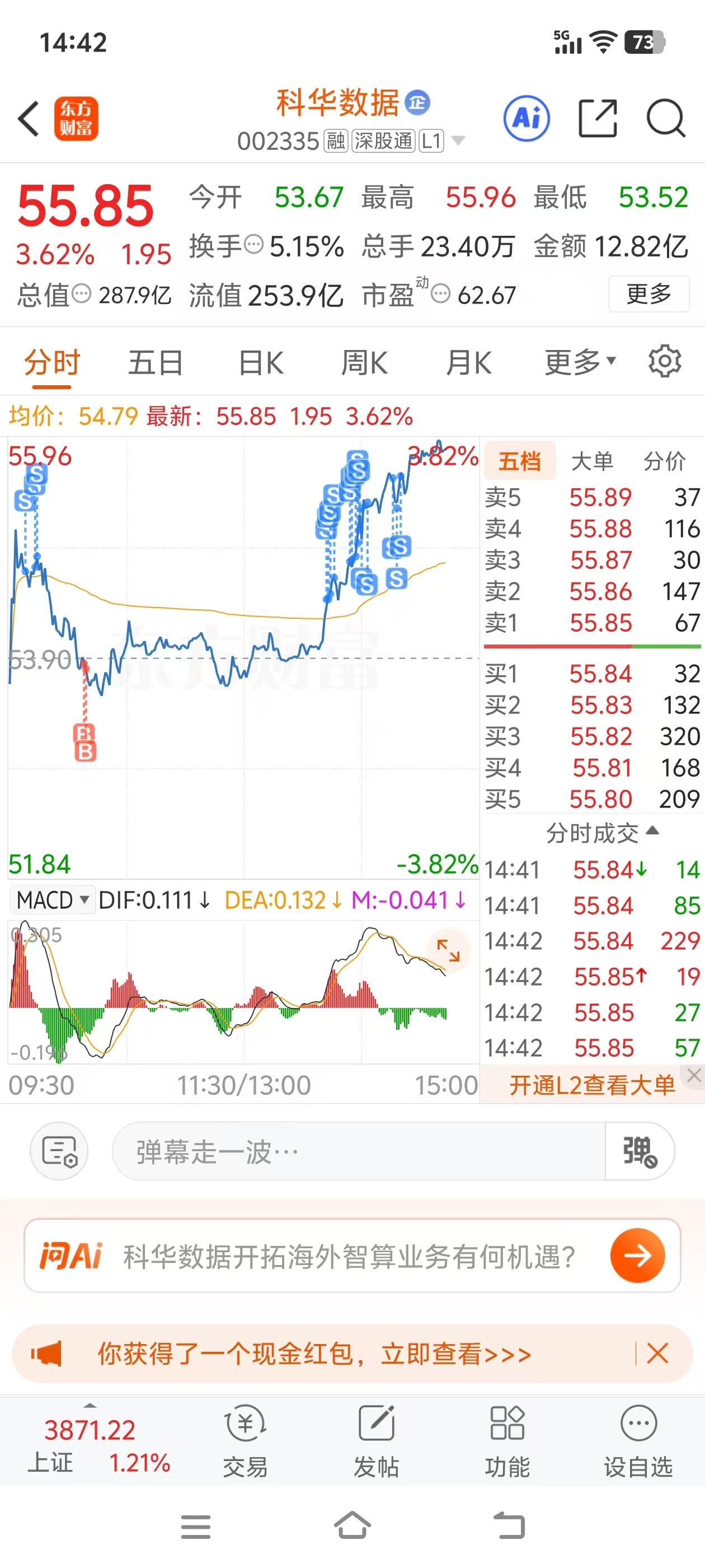 $科华数据(SZ002335)$ 昨天都卖空了,就留了1000股当天做t的,卖掉了15000股,哈哈