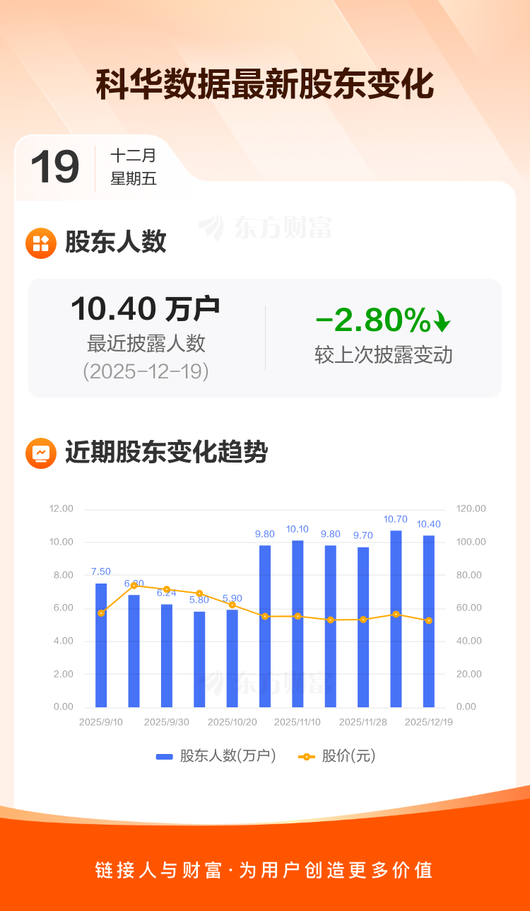 科华数据:截至12月19日最新股东户数10.40万户,较上期减少2.80%