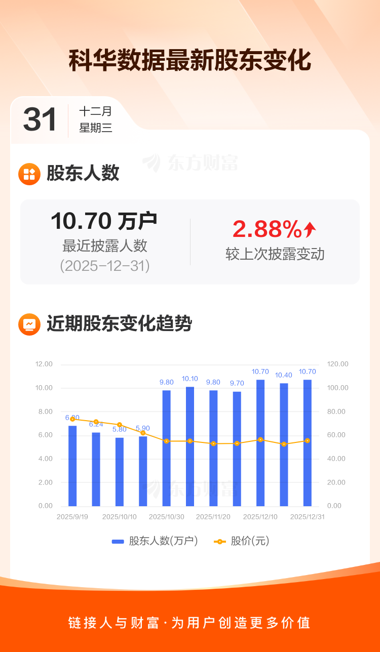 科华数据:截至12月31日最新股东户数10.70万户,较上期增加2.88%