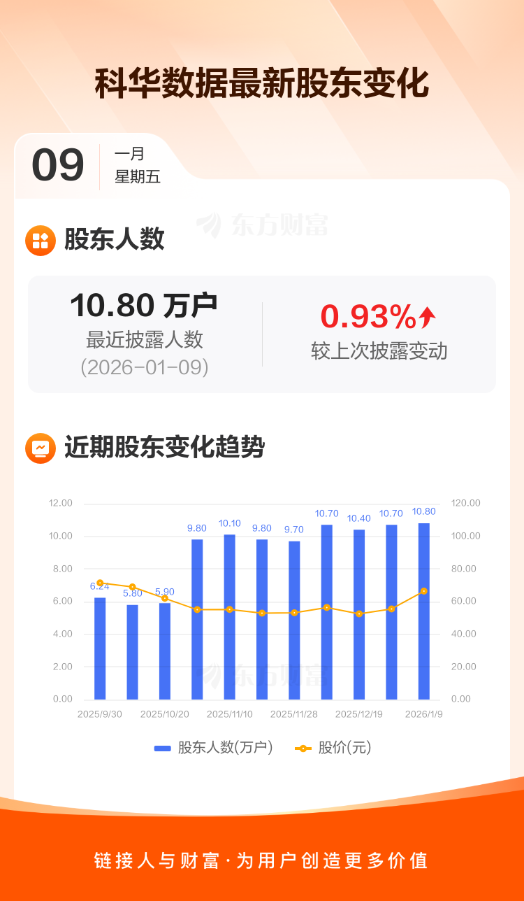 科华数据:截至1月9日最新股东户数10.80万户,较上期增加0.93%