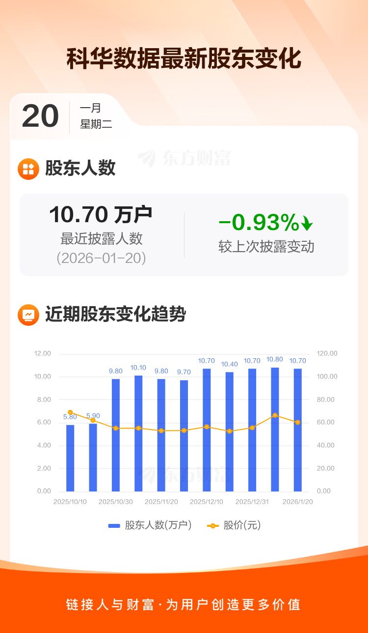 科华数据:截至1月20日最新股东户数10.70万户,较上期减少0.93%