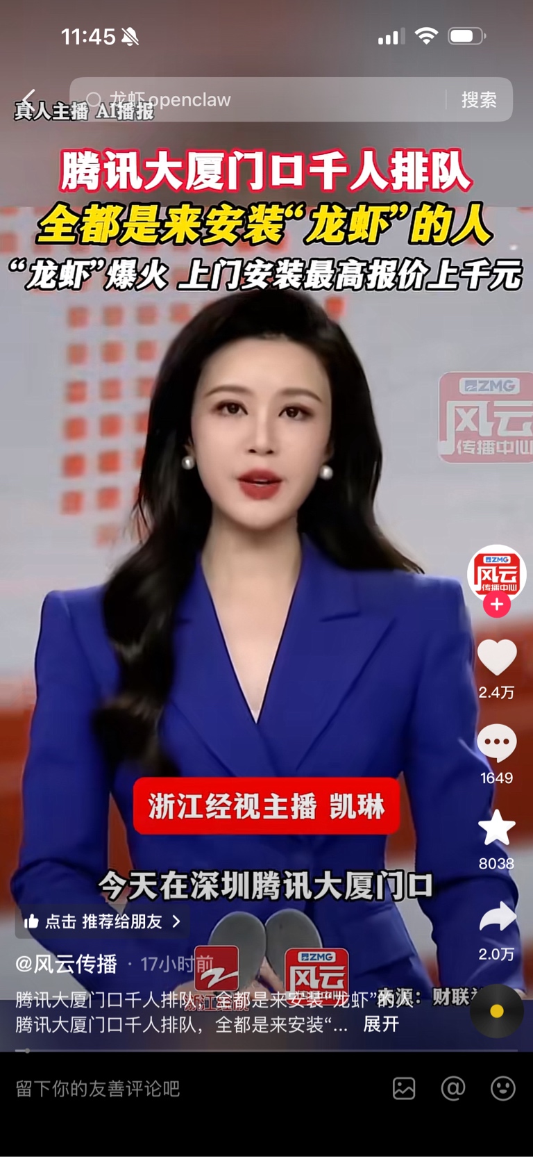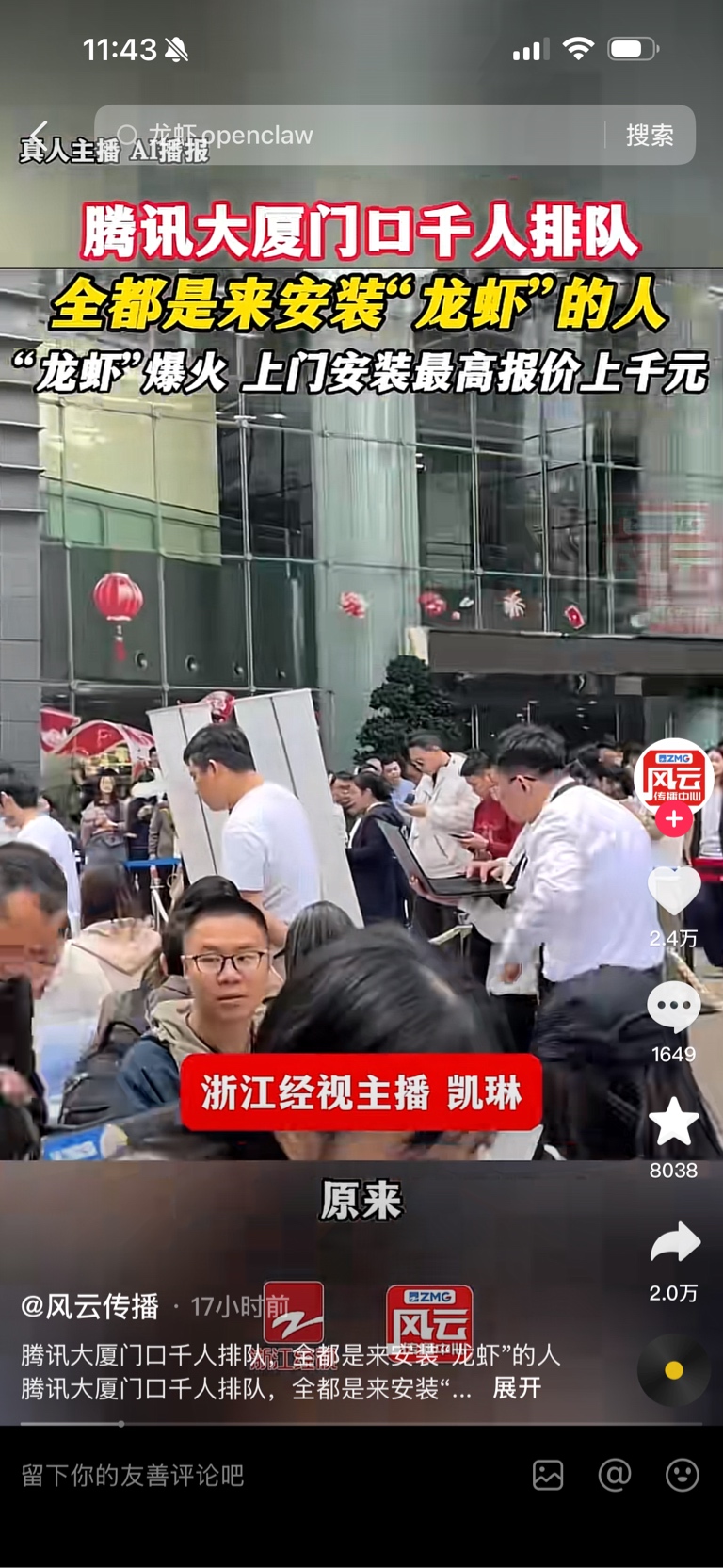 今天你养“龙虾了么?腾讯门口排千人长龙,腾讯协助安装Openclaw,龙虾火爆出