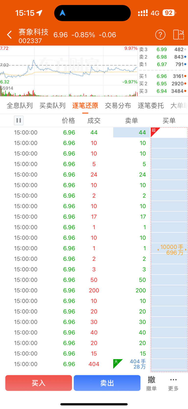 $赛象科技(SZ002337)$ 尾盘竞价,万手大单是啥意思,抢筹?