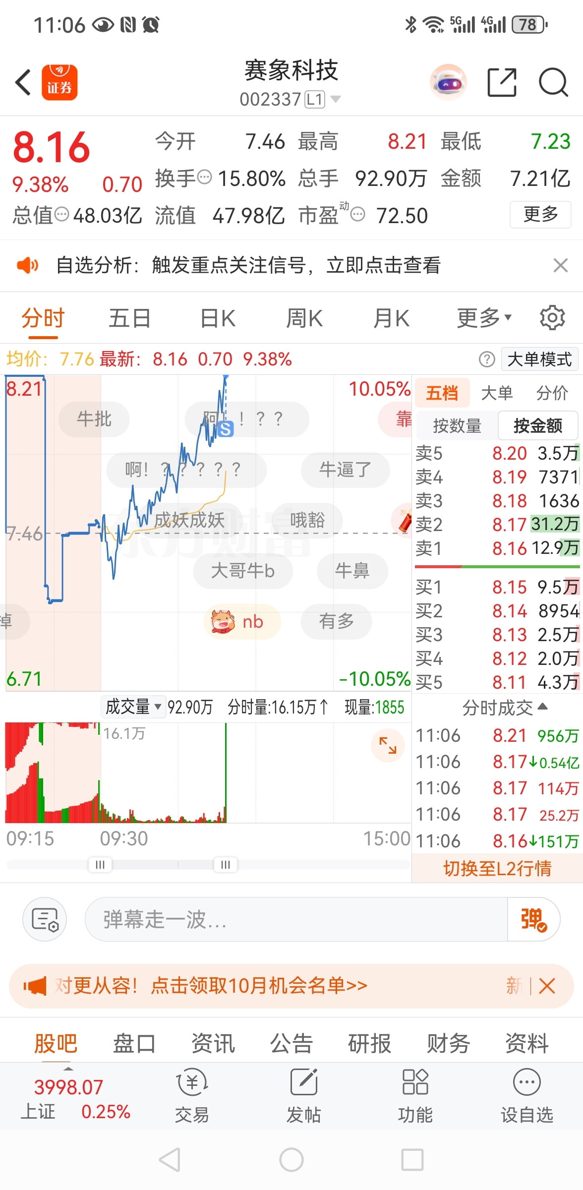 $赛象科技(SZ002337)$ 还是意了,卖啥子半仓…………