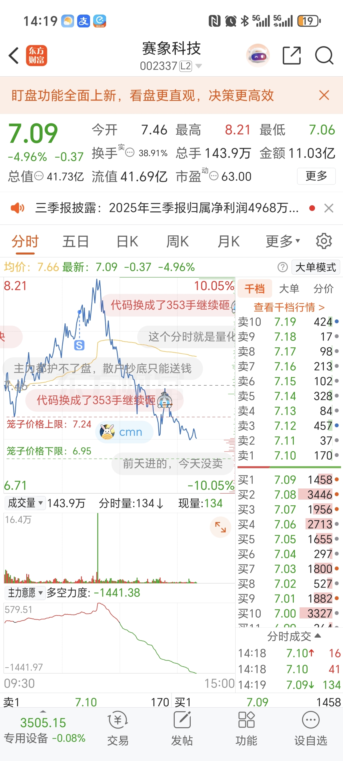 $赛象科技(SZ002337)$ 快跑吧,兄弟们,主力被老庄爆头。看不见吗?从涨停板一直砸到水下,明天还是深水区