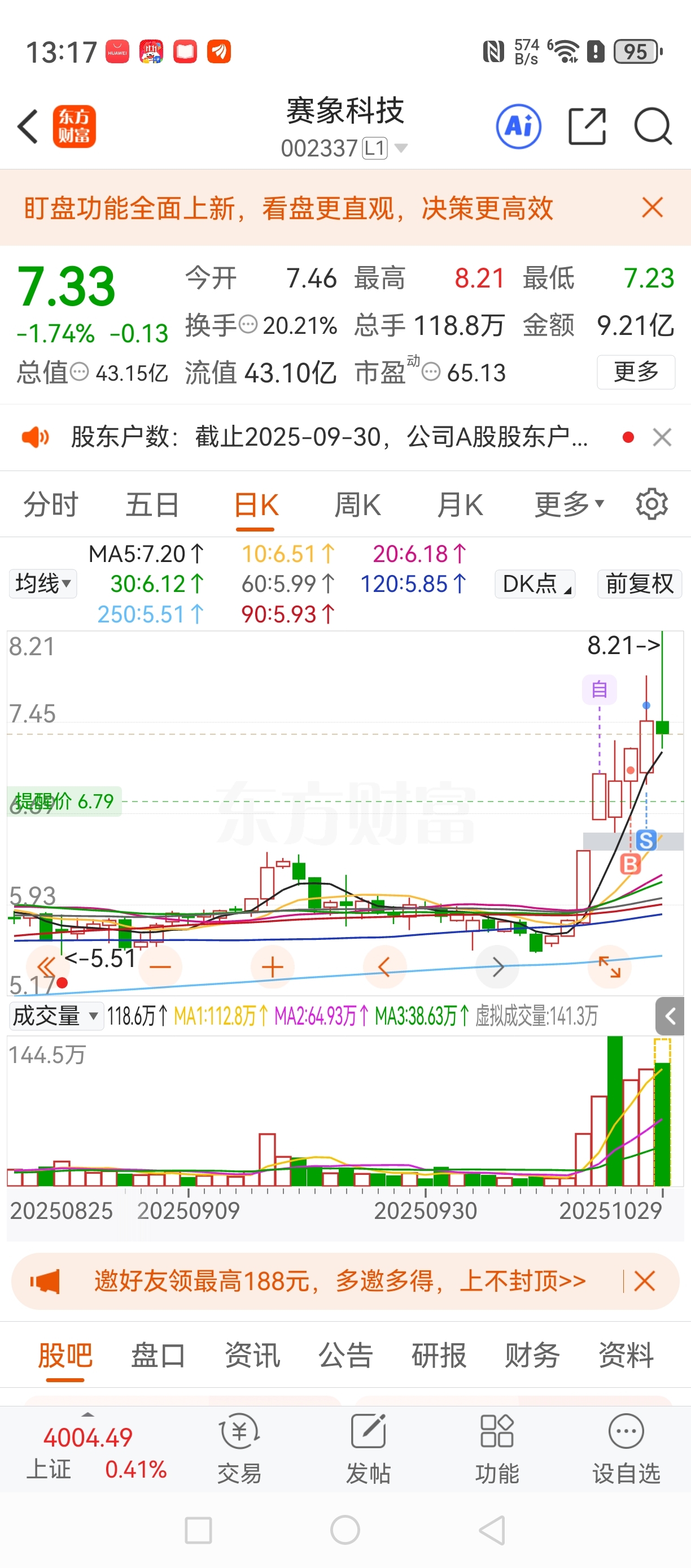 $赛象科技(SZ002337)$ 昨天预期上板的,结果还回撤了,果断放弃。今天早上一度认为卖飞了。