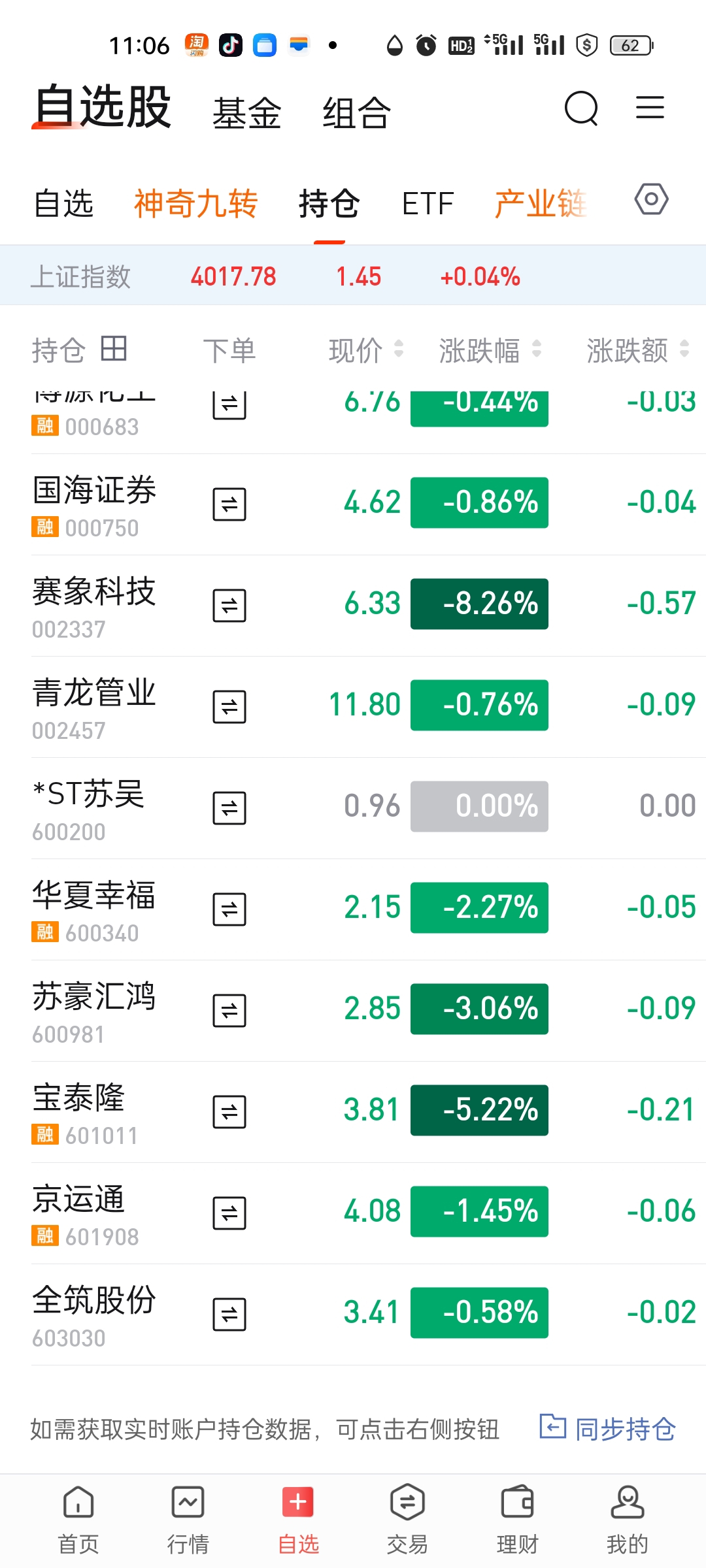 持仓都是绿油油