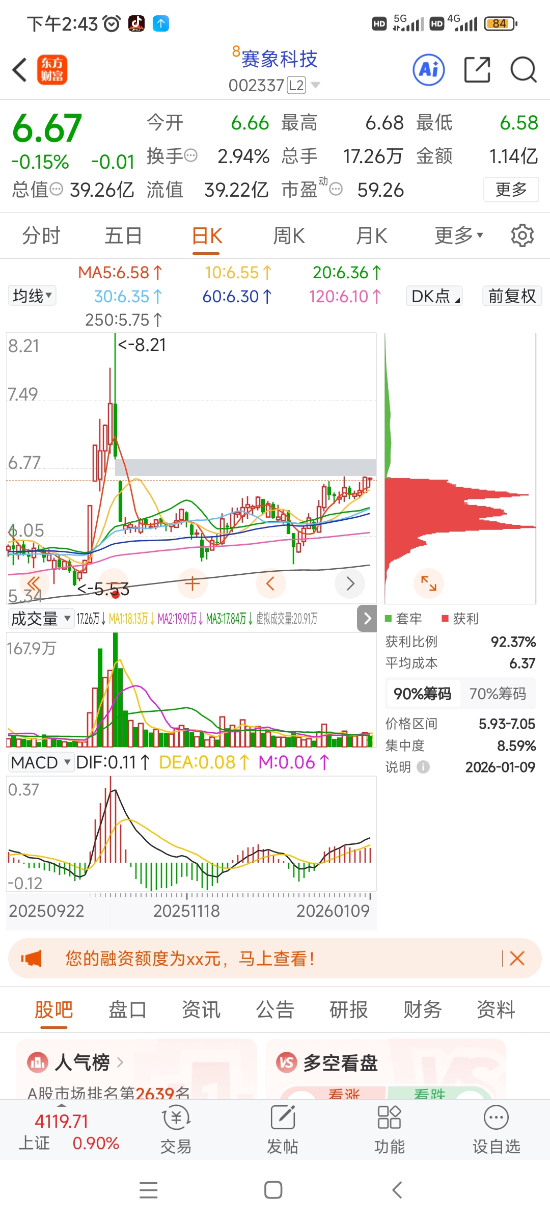 $赛象科技(SZ002337)$ 赛象操作建议:4成仓位,留仓位防回踩