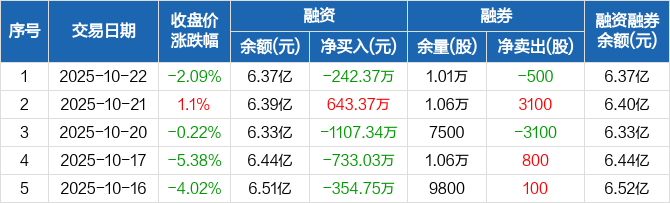 奥普光电:融资净偿还242.37万元,融资余额6.37亿元(10-22)