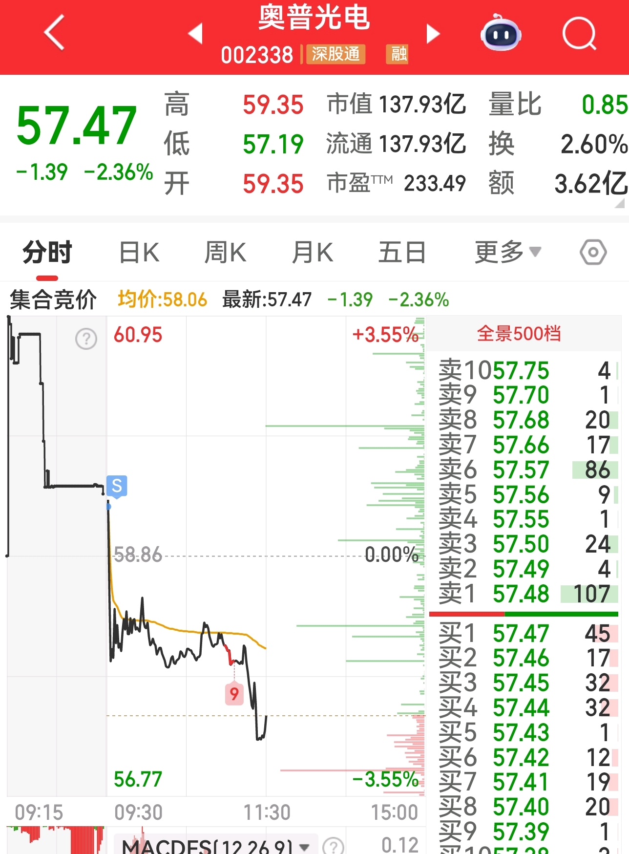 $奥普光电(SZ002338)$ 压力位59.49,谁不走谁后悔,姐说的短线,长线无忧~