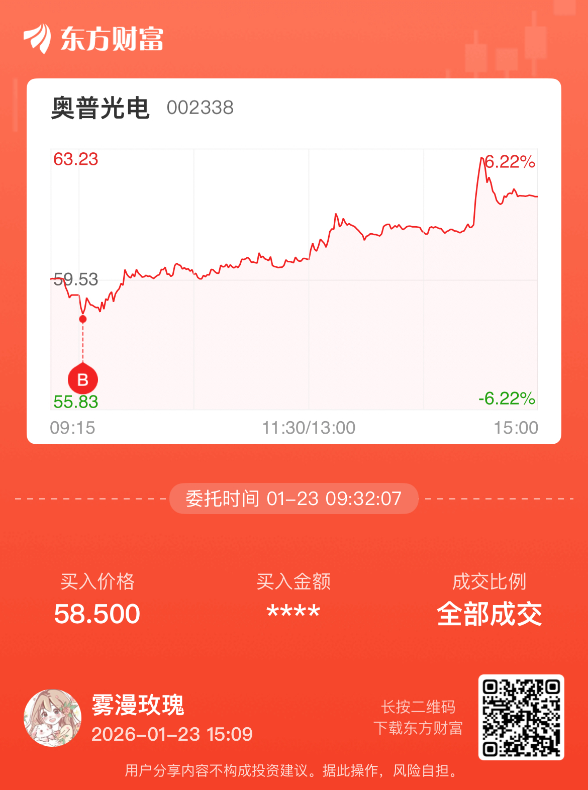 温馨提示: 1.根据《证券法》规定,禁止编造、传播虚假信息或者误导性信息,扰乱证券市场;2.用户在本社区发表的所有资料、言论等仅代表个人观点,与本网站立场无关,不对您构成任何投资建议。用户应基于自己的独立判断,自行决定证券投资并承担相应风险。《东方财富社区管理规定》