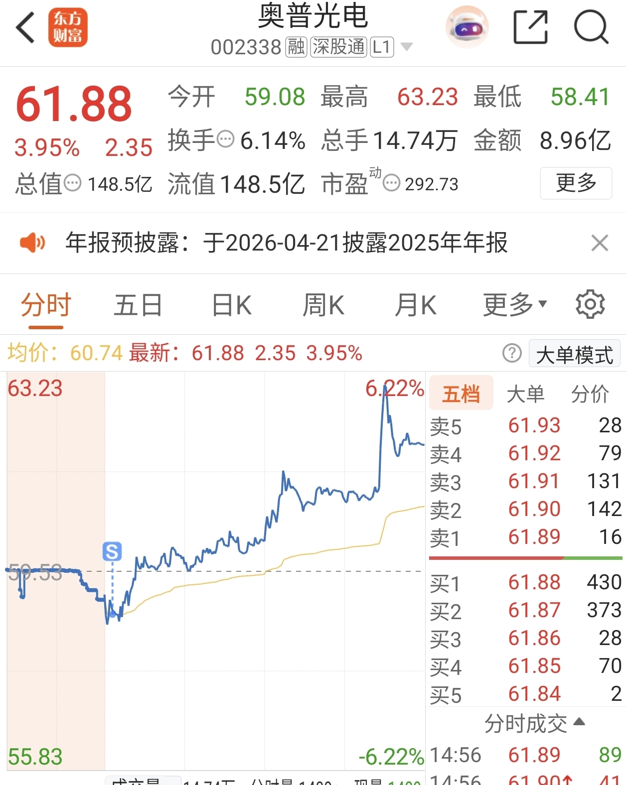 $奥普光电(SZ002338)$ 主力大哥我没跟上