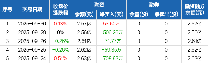 积成电子:融资净买入53.6万元,融资余额2.57亿元(09-30)