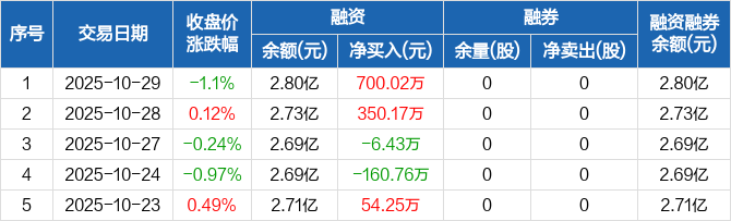 积成电子:融资净买入700.02万元,融资余额2.8亿元(10-29)