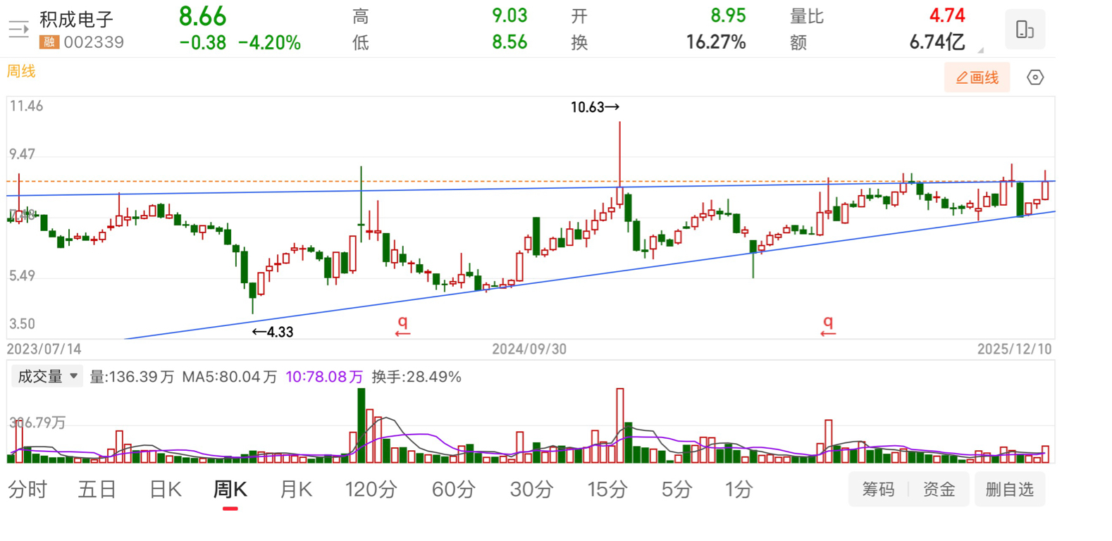 本周突破区间线就是最完美的。