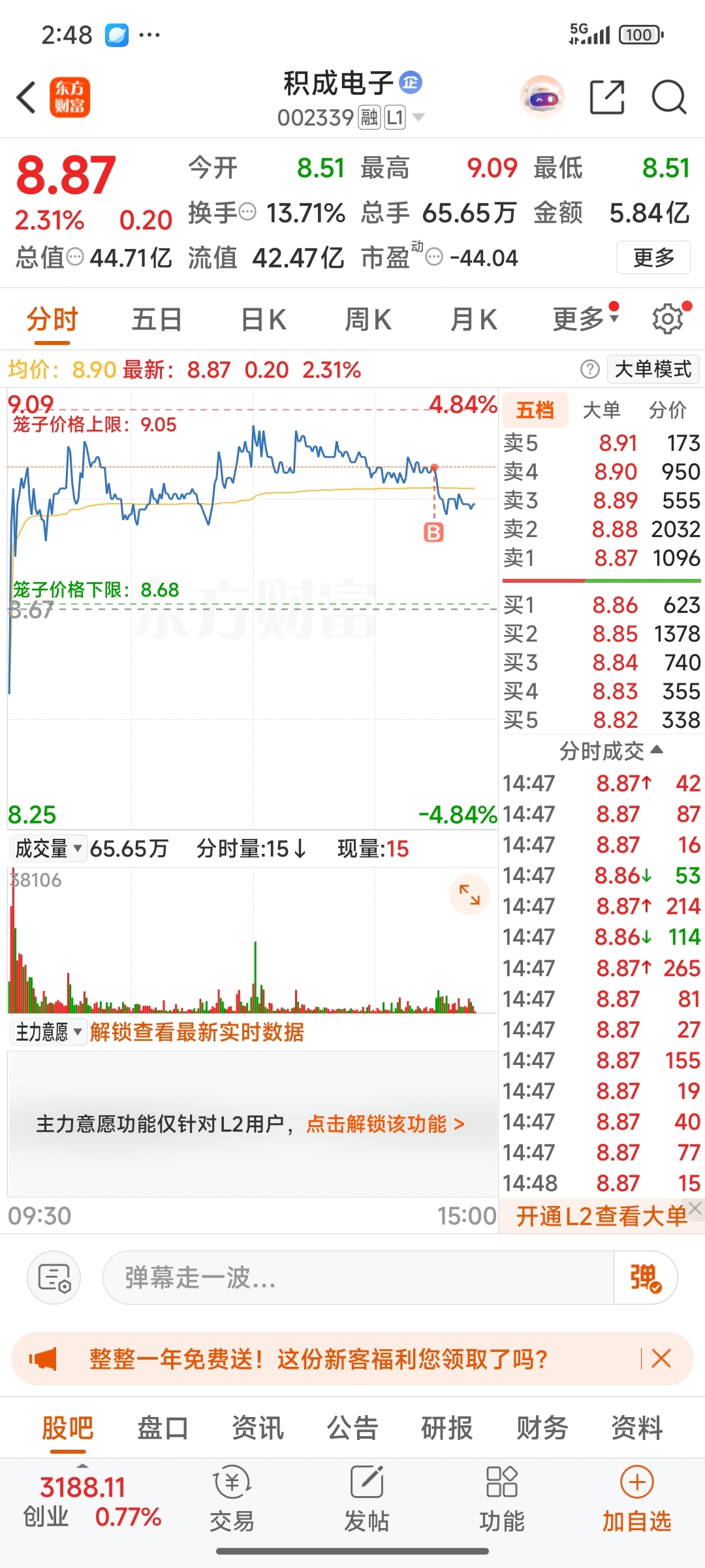 $积成电子(SZ002339)$ 哈哈,这是被我买崩了 吗?进去就刷刷的掉#周度策略#