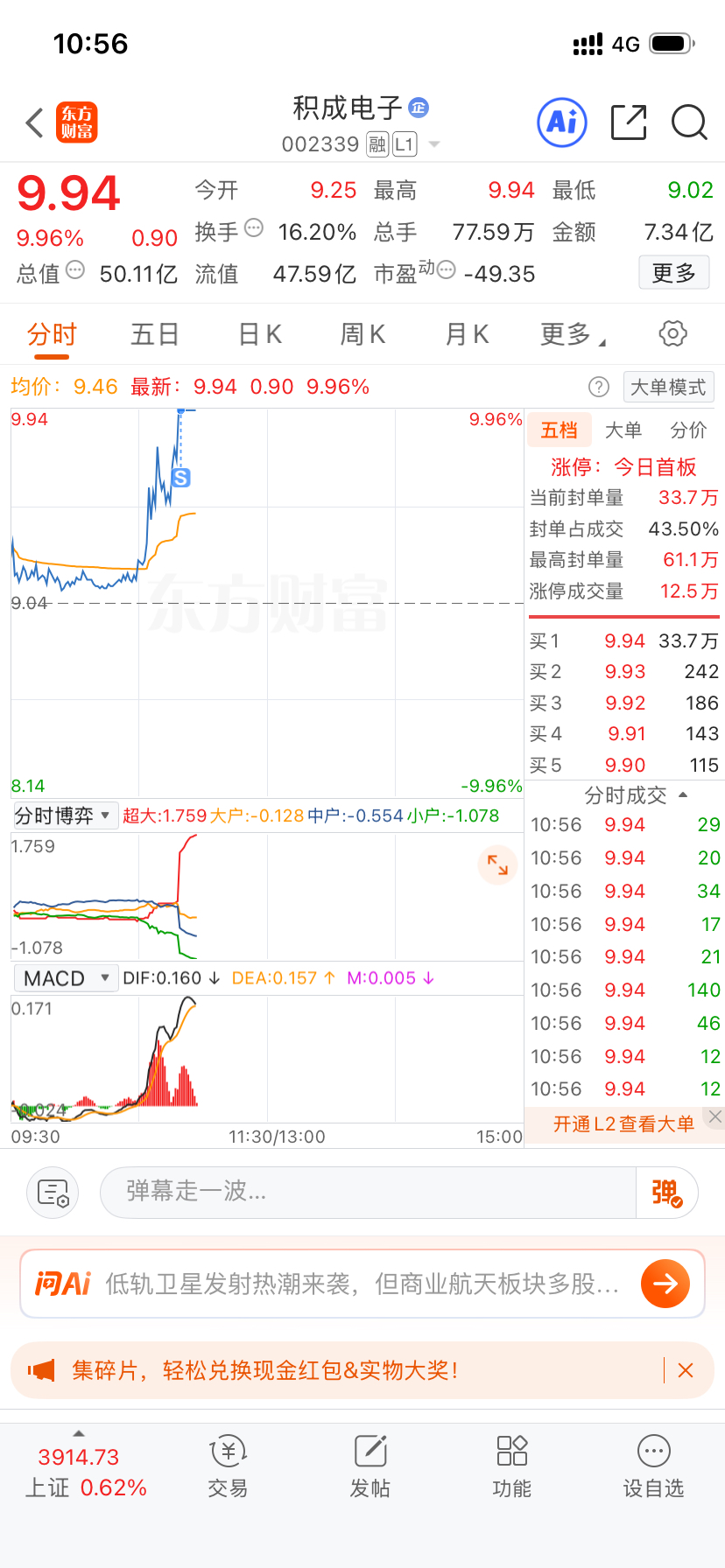$积成电子(SZ002339)$ 冲动了卖早了,明天竞价还有溢价。