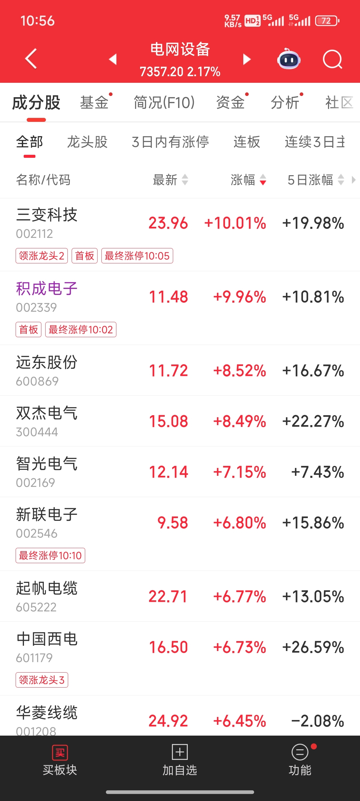 今天的积成电子比三变科技封板早3分钟,谁先封板谁就是龙头