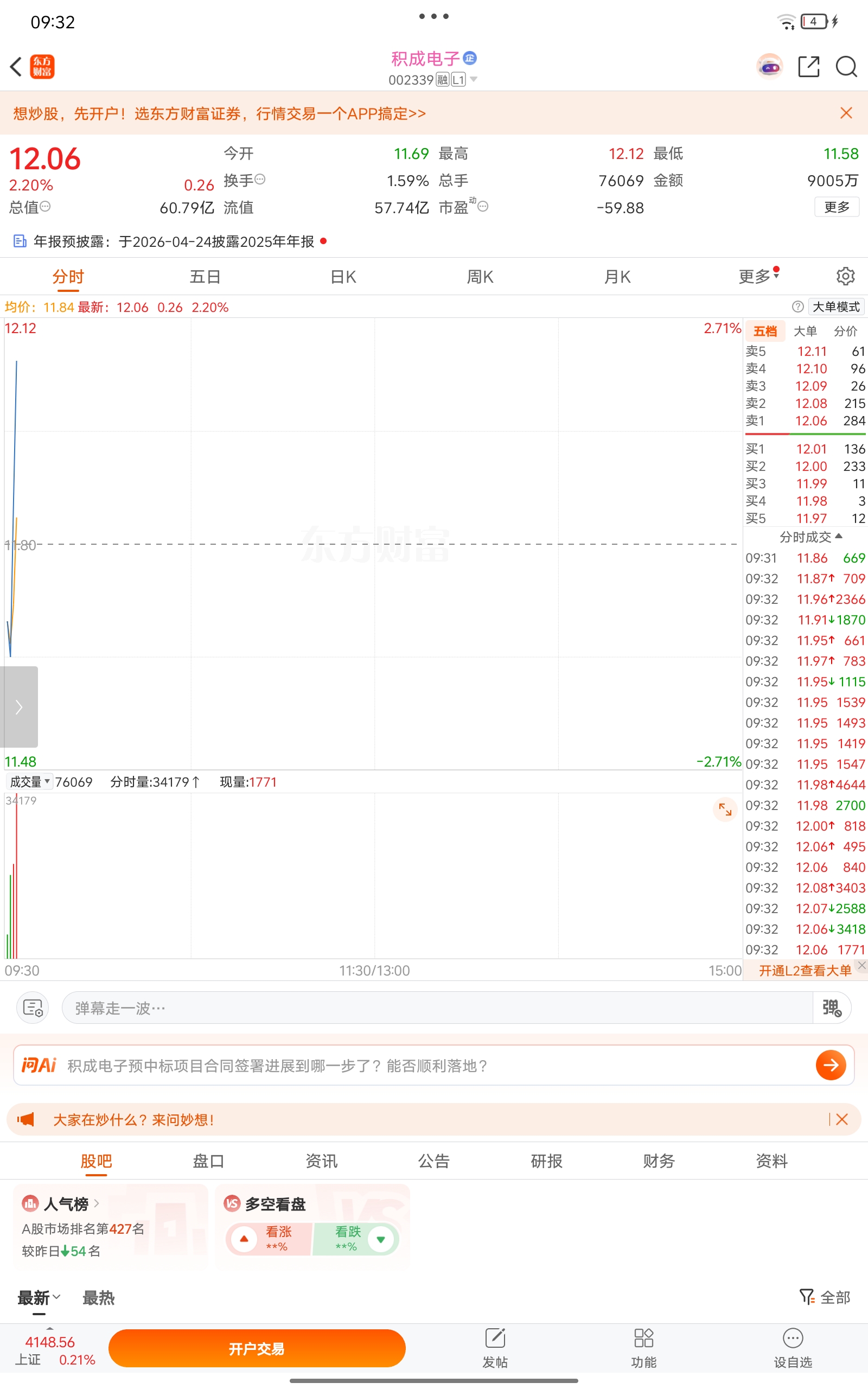 $积成电子(SZ002339)$ 昨天上车积成的兄弟,今天继续坐稳扶好,等待吃肉下车,切勿贪念!