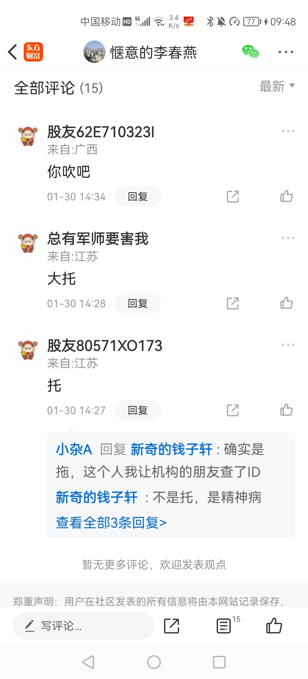 温馨提示: 1.根据《证券法》规定,禁止编造、传播虚假信息或者误导性信息,扰乱证券市场;2.用户在本社区发表的所有资料、言论等仅代表个人观点,与本网站立场无关,不对您构成任何投资建议。用户应基于自己的独立判断,自行决定证券投资并承担相应风险。《东方财富社区管理规定》