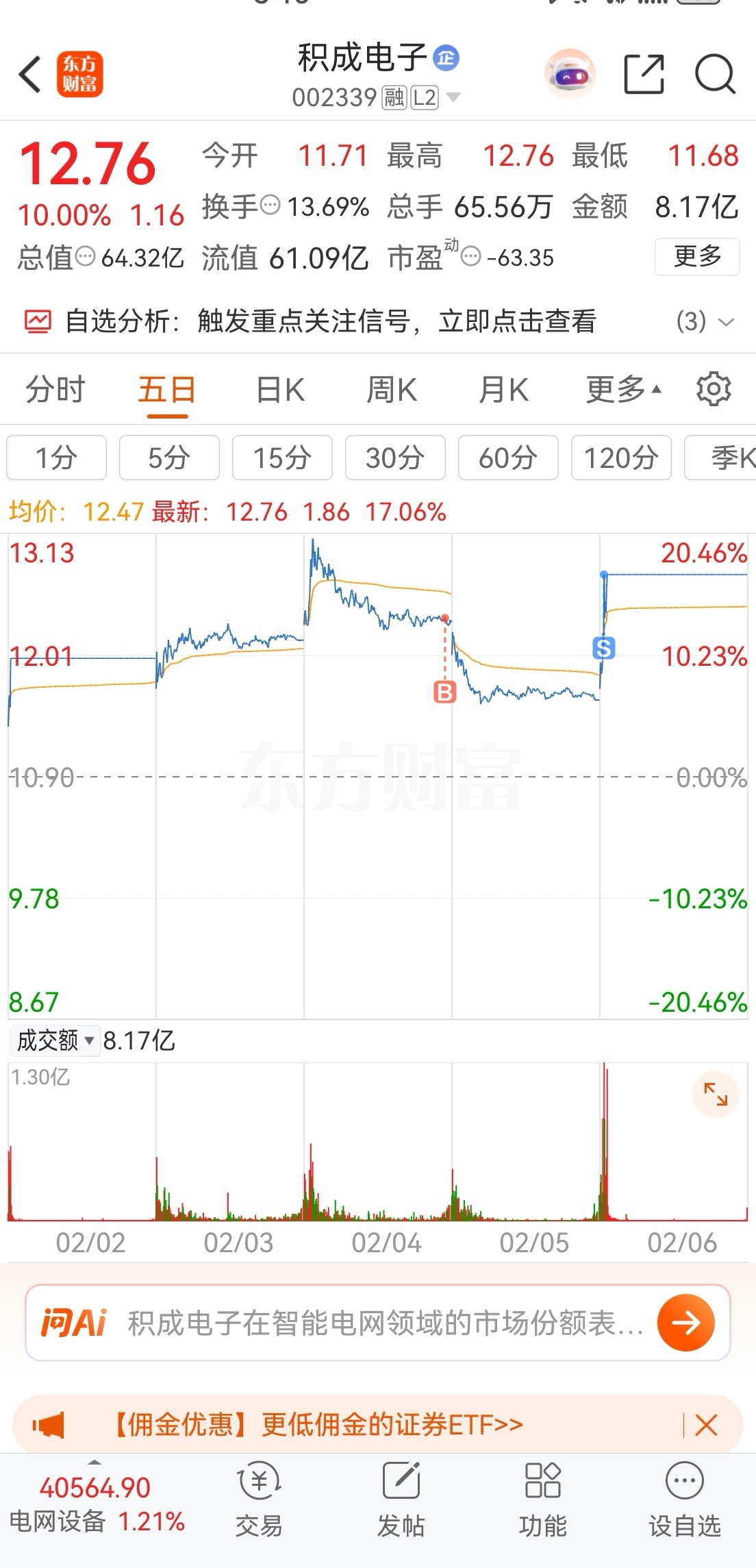$积成电子(SZ002339)$ 短线三四个点也落袋为安