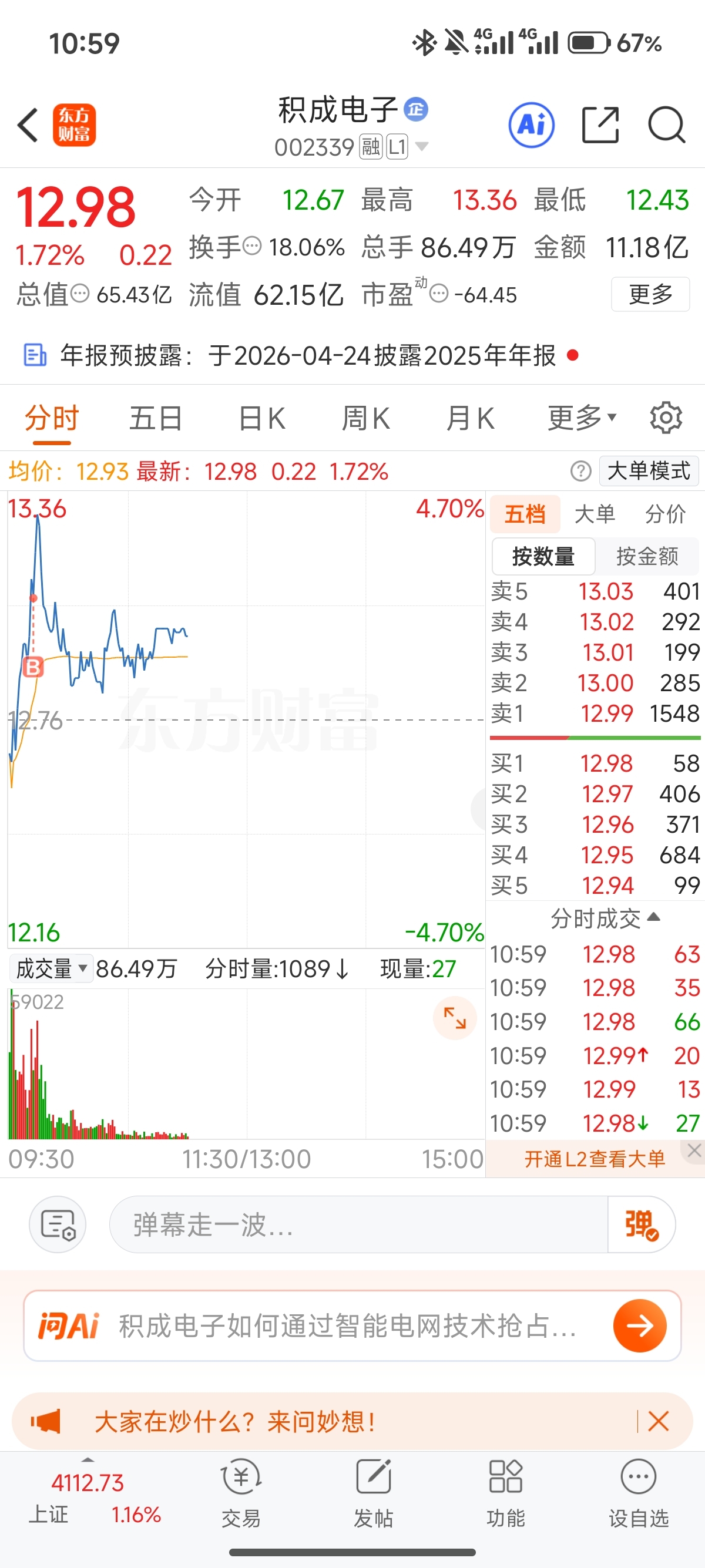 $积成电子(SZ002339)$ 看样子还可以,没买到山顶