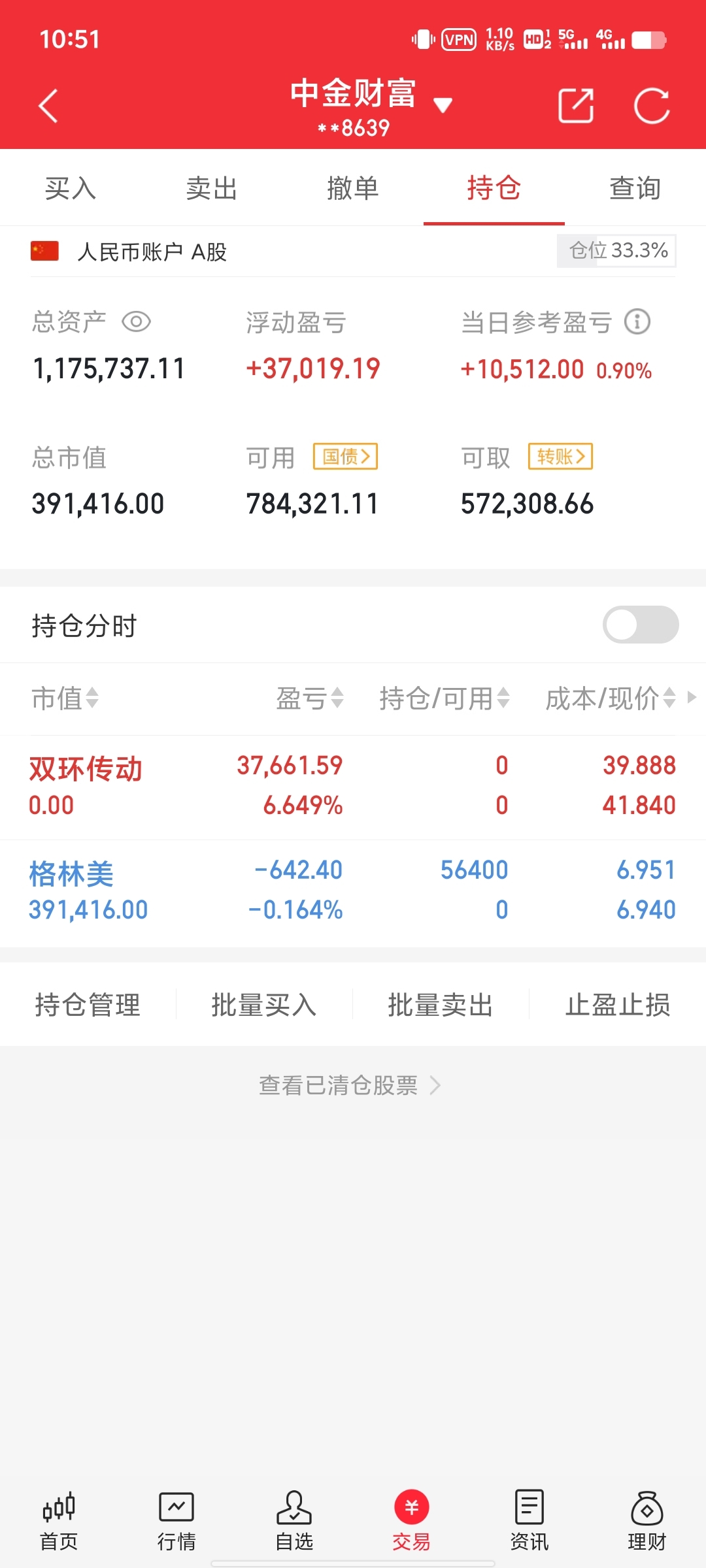 今天卖出: $双环传动(SZ002472)$ 盈利: + 37661