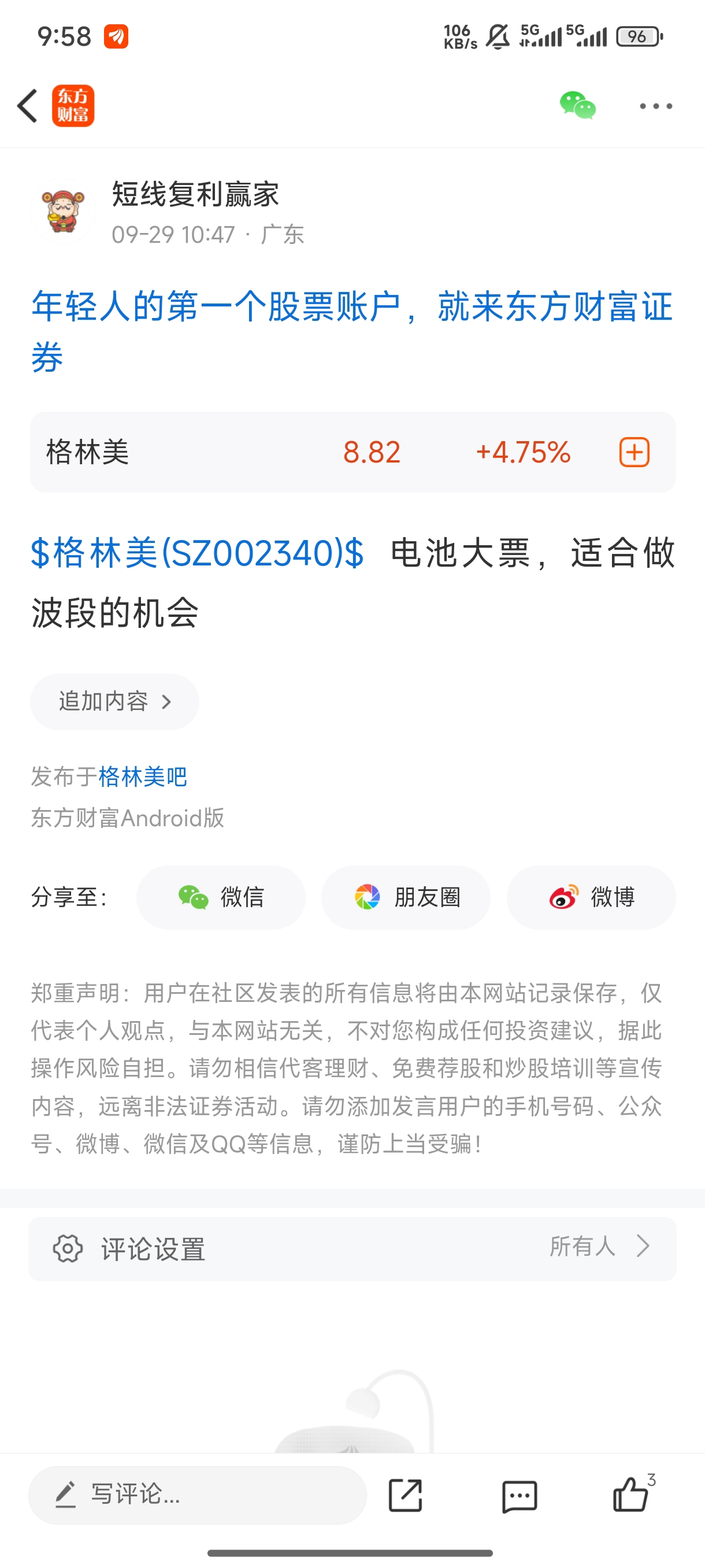 温馨提示: 1.根据《证券法》规定,禁止编造、传播虚假信息或者误导性信息,扰乱证券市场;2.用户在本社区发表的所有资料、言论等仅代表个人观点,与本网站立场无关,不对您构成任何投资建议。用户应基于自己的独立判断,自行决定证券投资并承担相应风险。《东方财富社区管理规定》