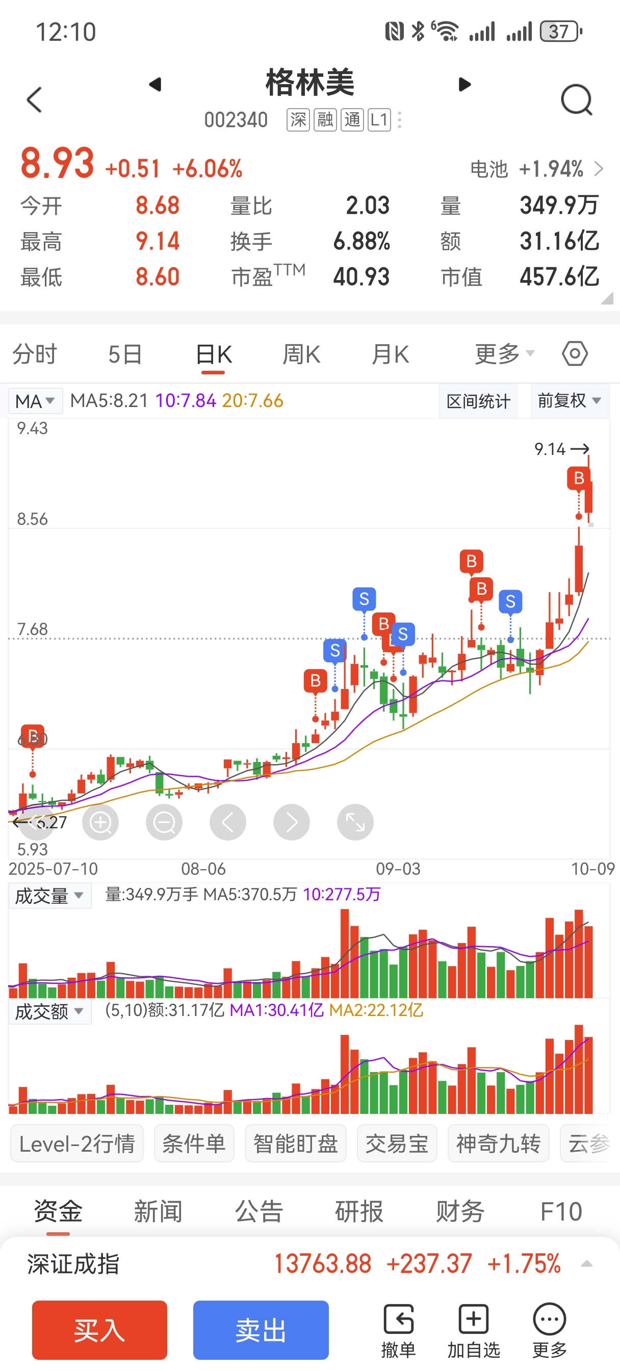 $格林美(SZ002340)$ 趋势股,早晚突破10元!