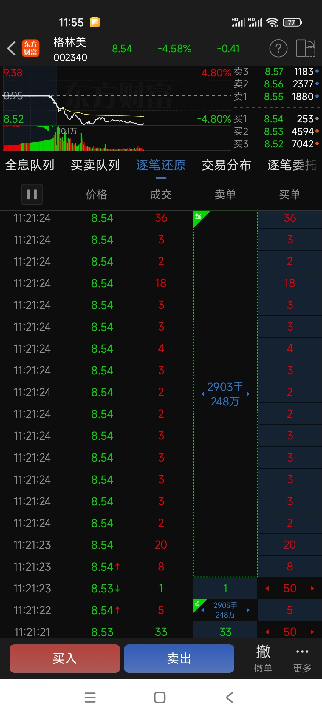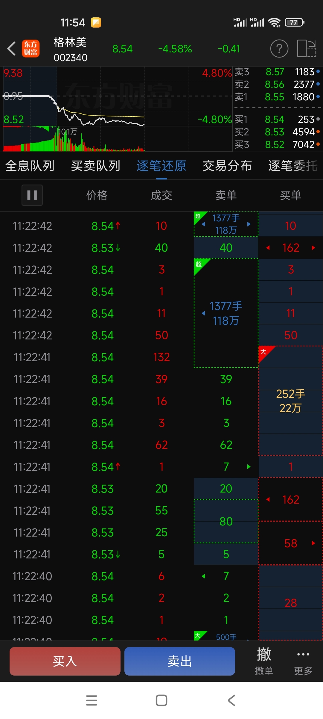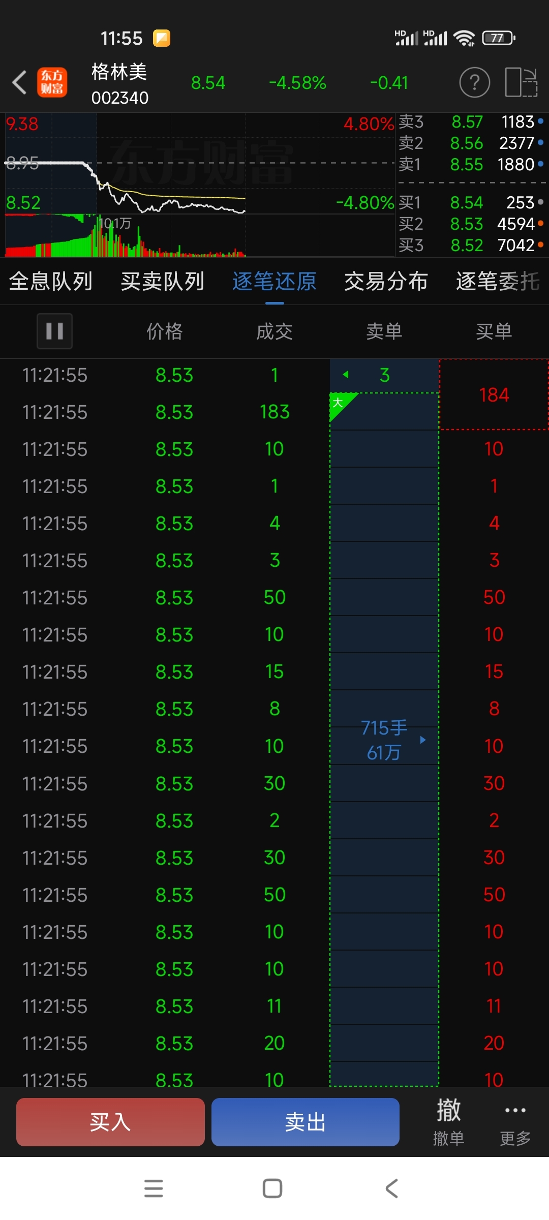 $格林美(SZ002340)$ 我们拿数据喝交易记录说话,也不要乱猜,机构卖出下面小单子都是散户低吸买入的,机构直接卖出给他们