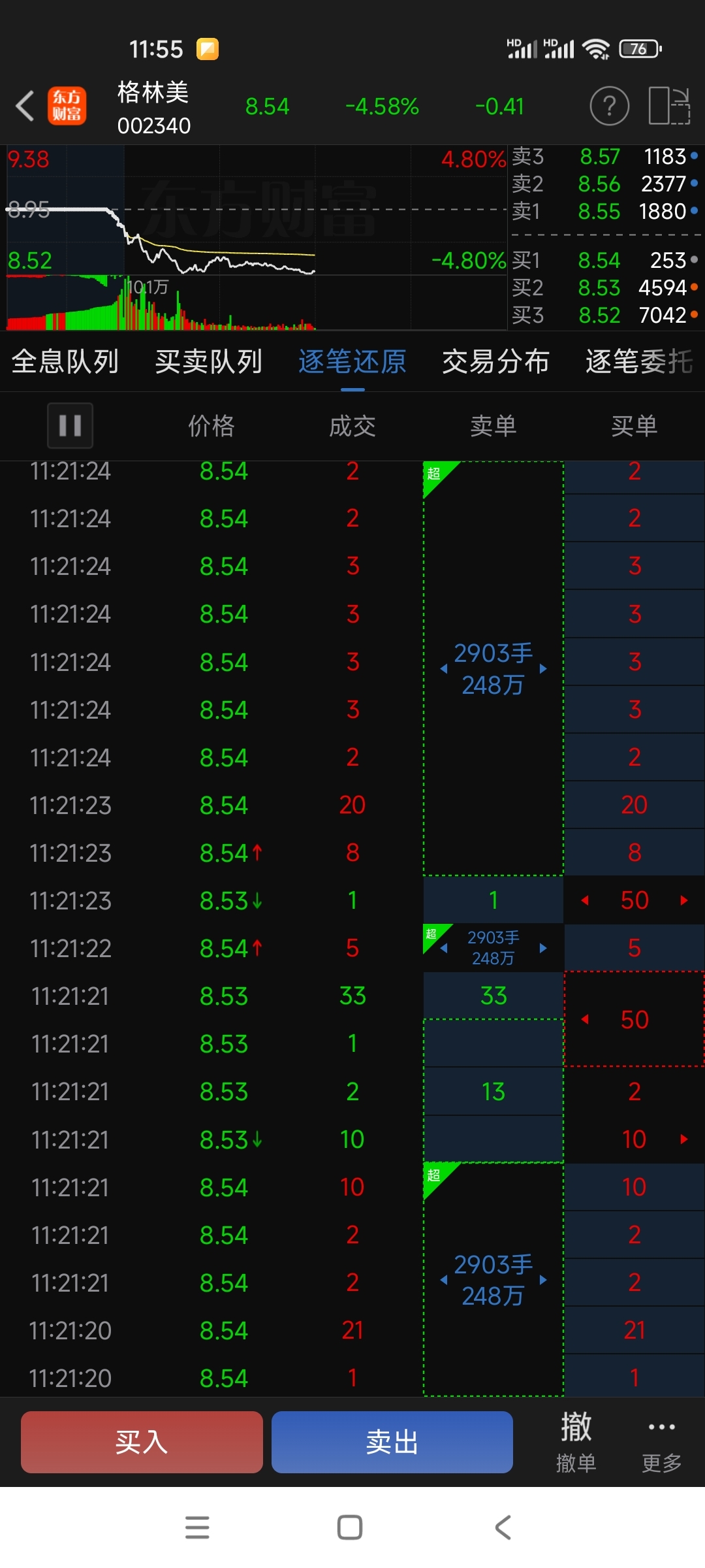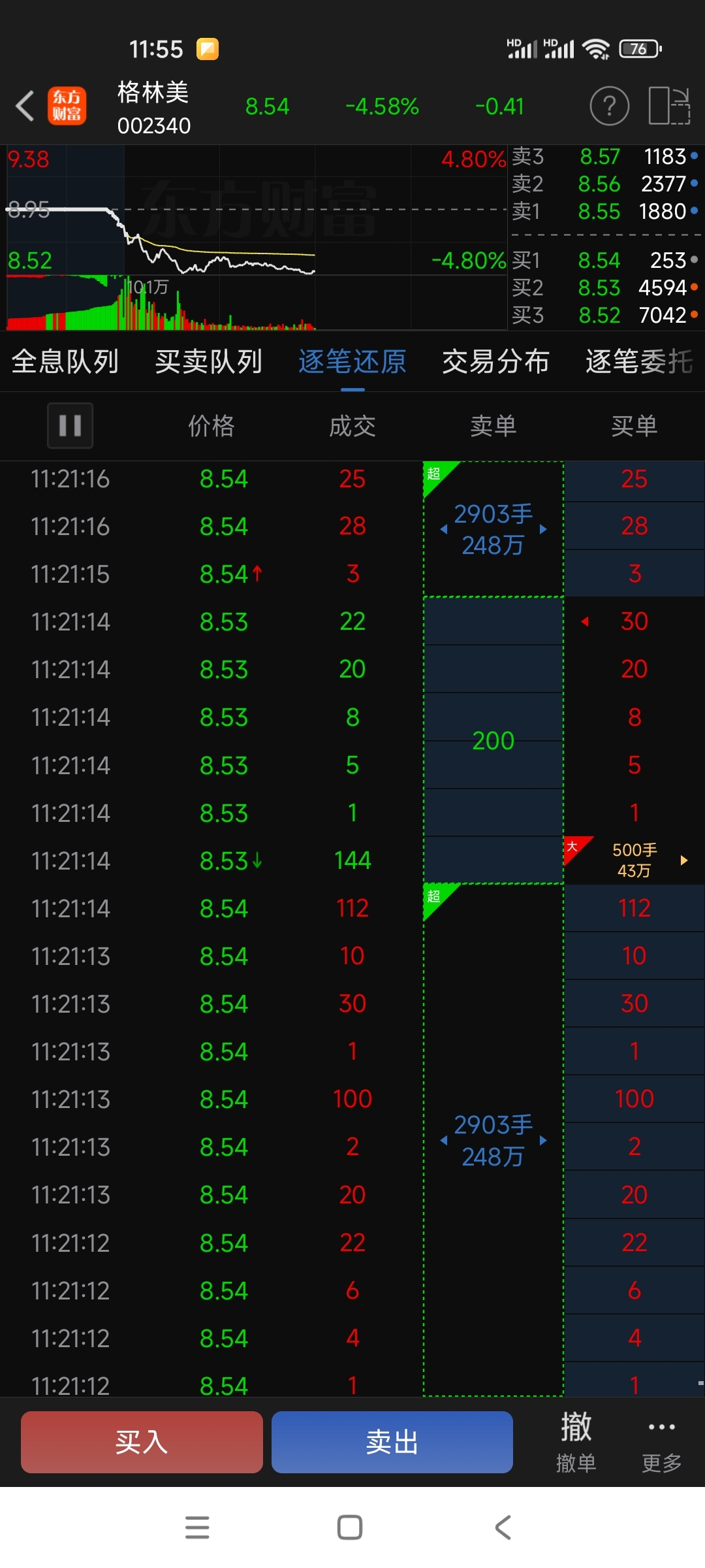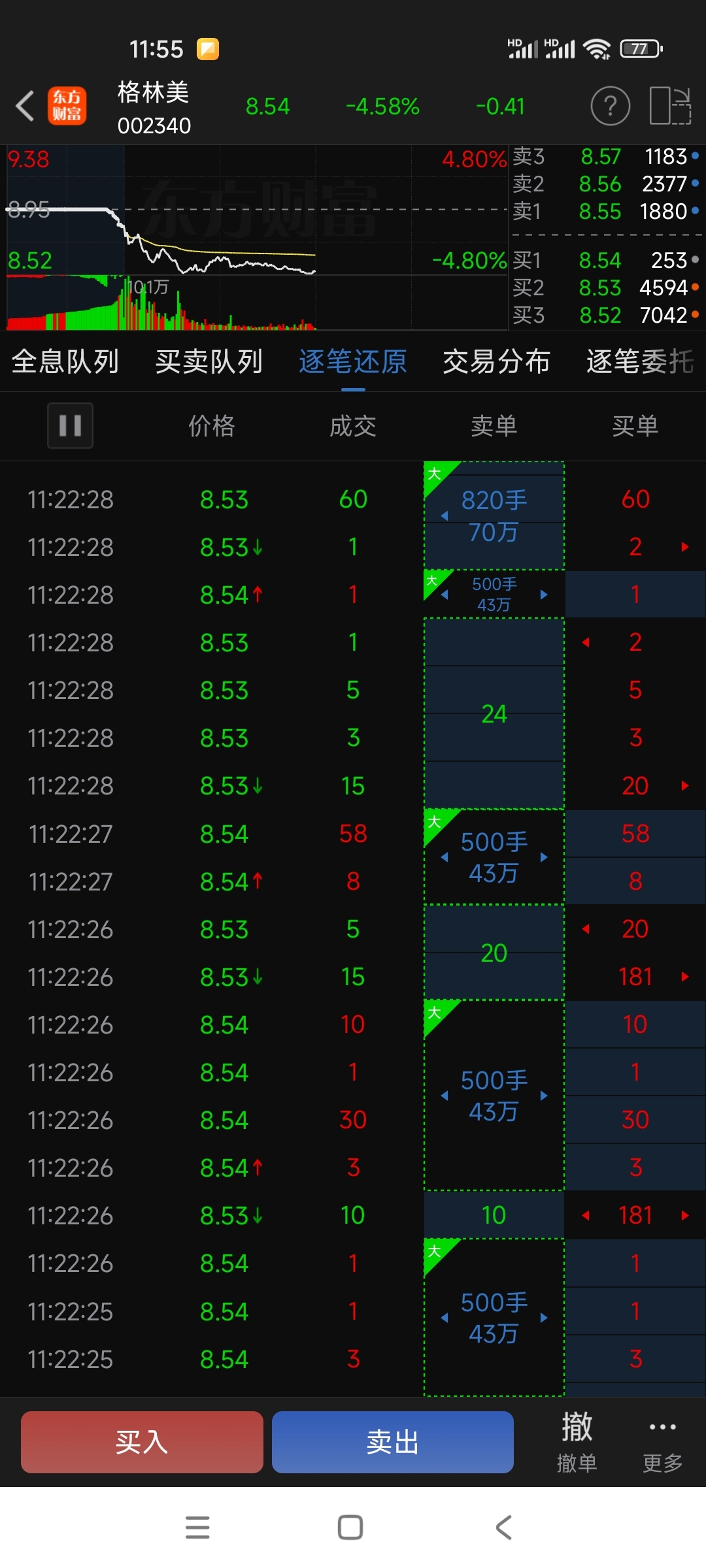 $格林美(SZ002340)$ 我们拿数据喝交易记录说话,也不要乱猜,机构卖出下面小单子都是散户低吸买入的,机构直接卖出给他们