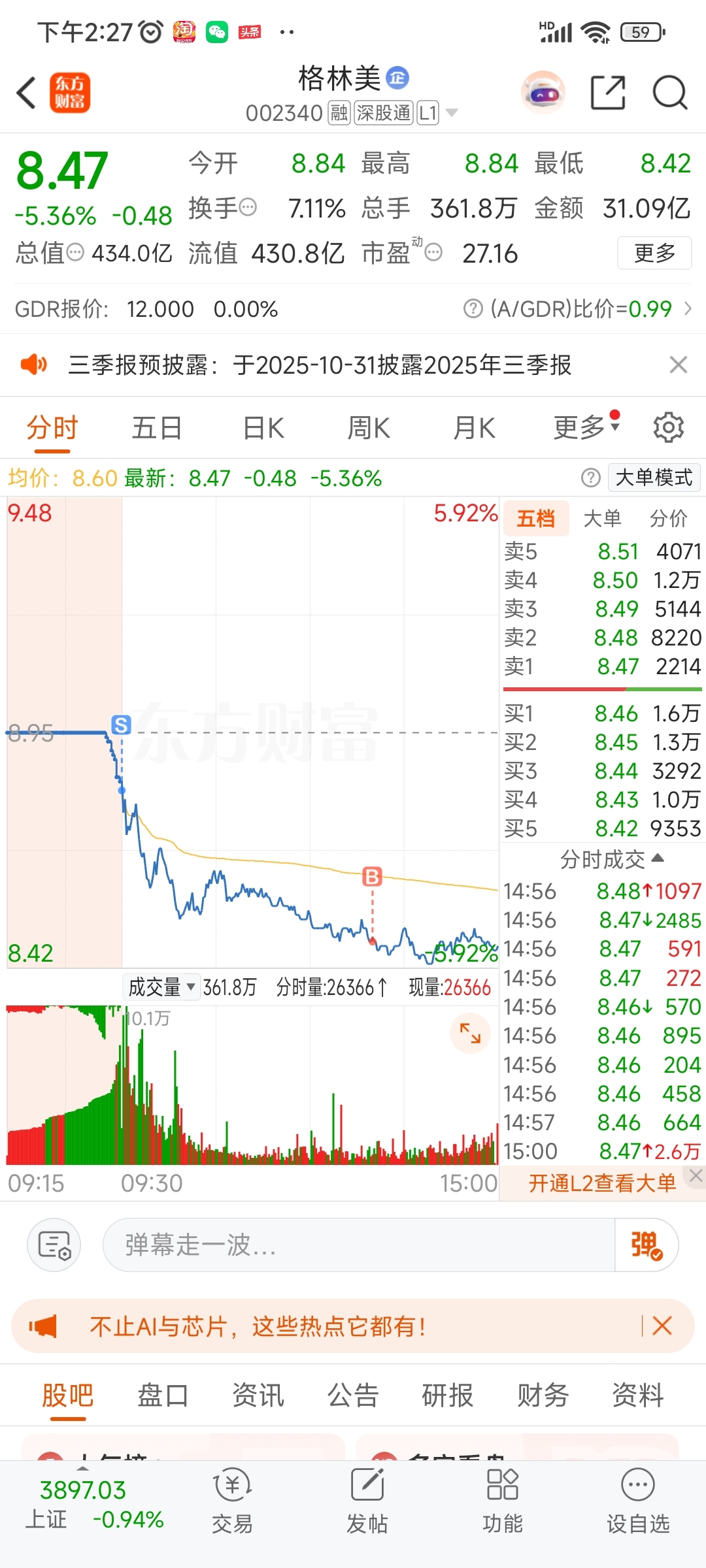 $格林美(SZ002340)$ 整个外围市场大跌,周一危险了