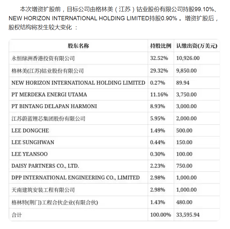 蔚蓝锂芯出资2000万美元参与格林美印尼项目增资扩股,获5.95%股权