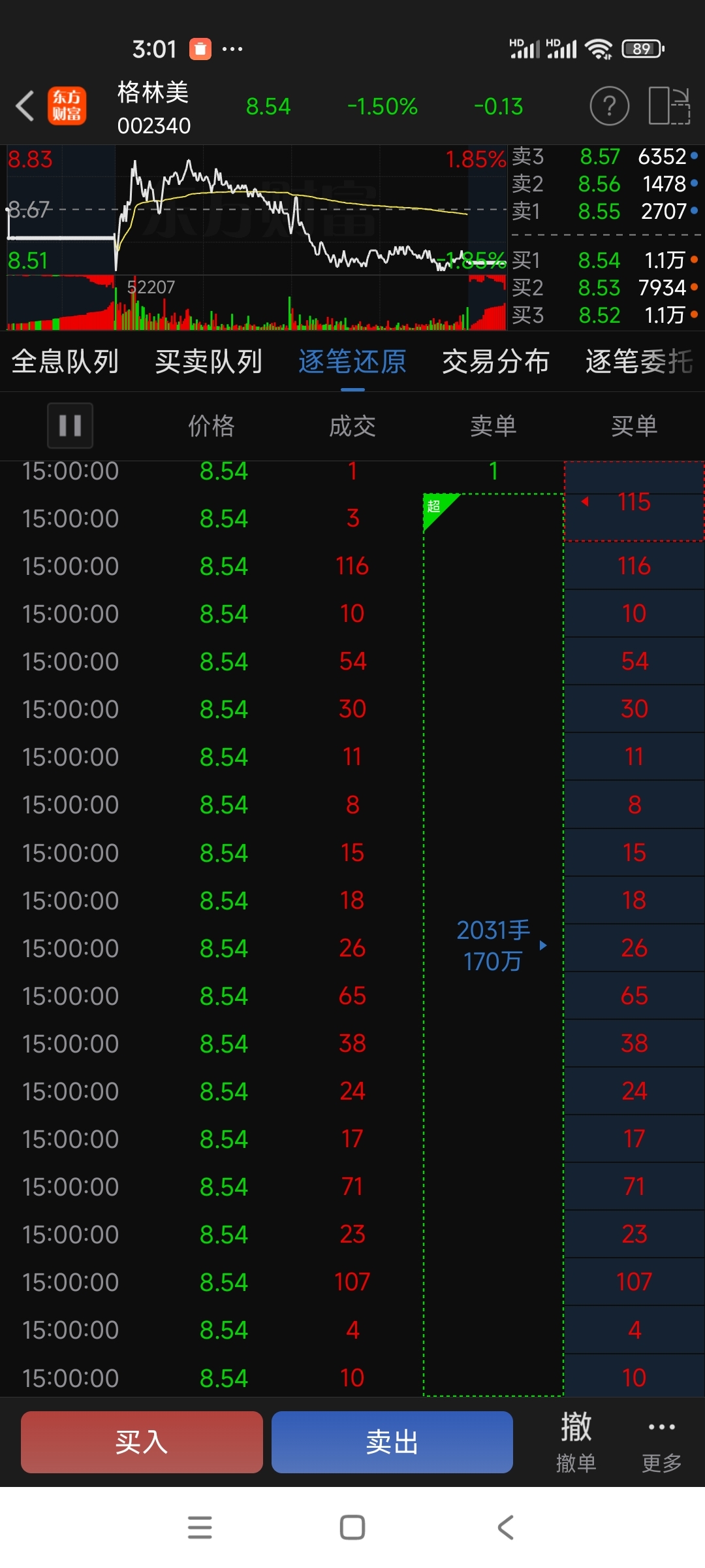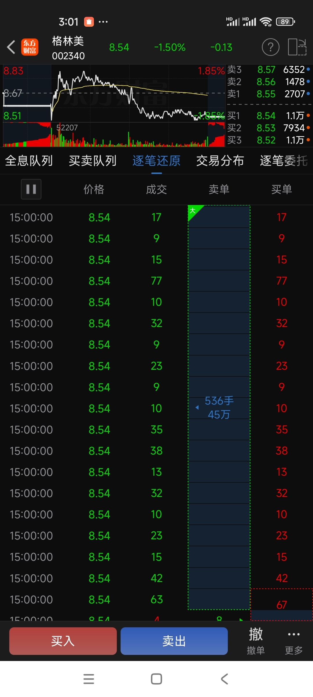 $格林美(SZ002340)$ 最后集合竞价还是卖,今天主力没少卖。从开盘卖到收盘