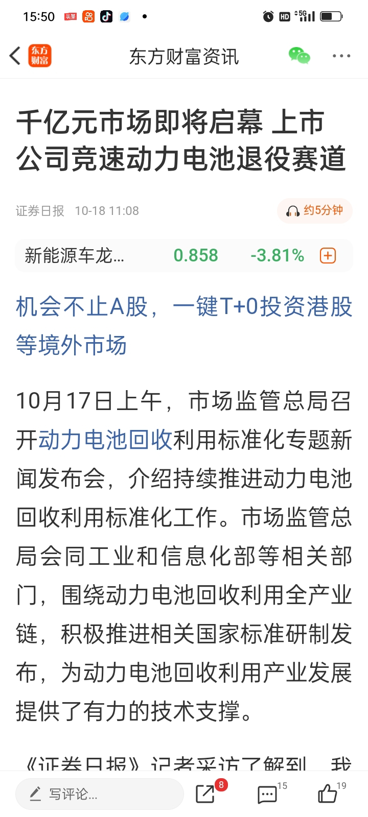 $格林美(SZ002340)$ 明天基本涨停没悬念了,明天会不再受华友钴业影响,会走出独立行情,最主要的就是周末出了废旧电池回收标准,这个对格林美是史诗级的利好,因为这些标准都是参考世界上最顶尖的废旧电池回收公司格林美制定的,新标准要求比较严格,规范,至少百分之80的落后产能直接淘汰,等于政策帮格林美淘汰了百分之80的对手,以后吃独食一飞冲天