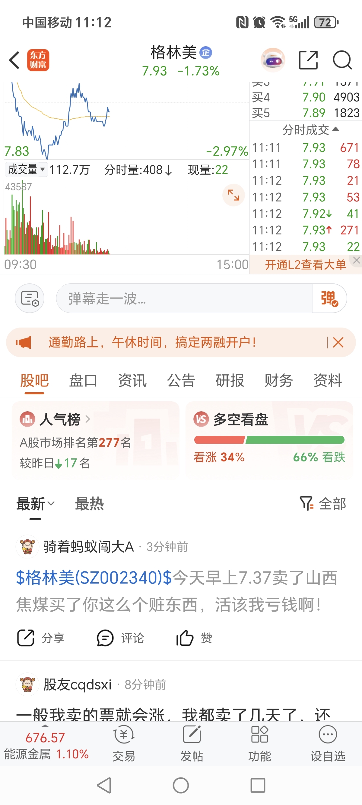 $格林美(SZ002340)$ 这股太狗了天天人气挺高,就是股价不涨