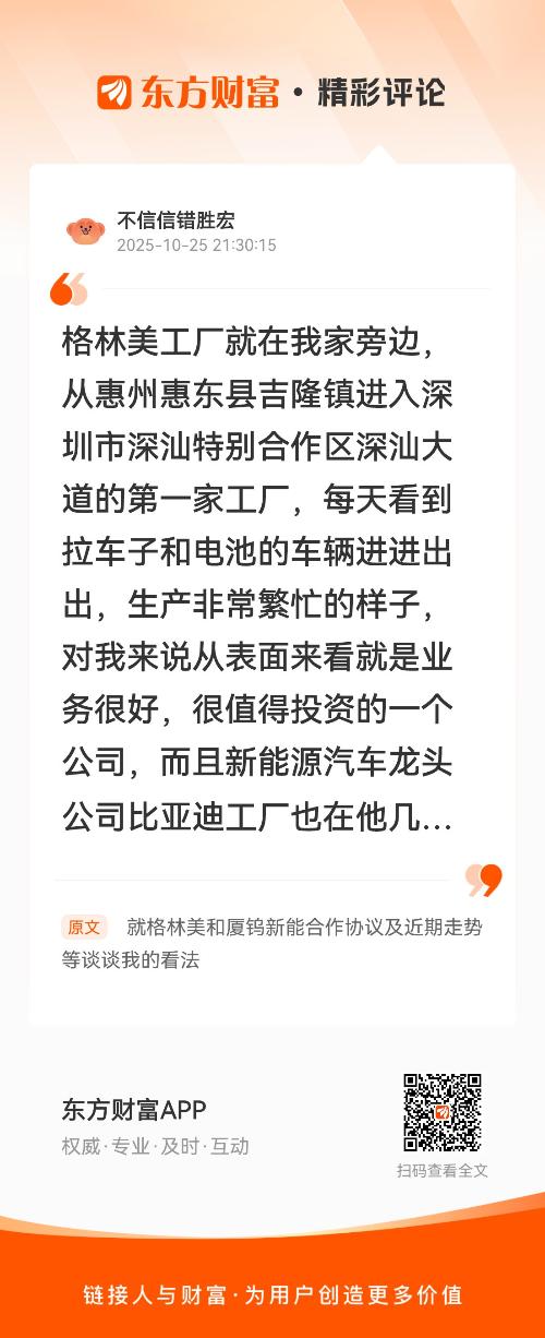 我在《就格林美和厦钨新能合作协议及近期走势等谈谈我的看法》的评论获得了大家的关注。