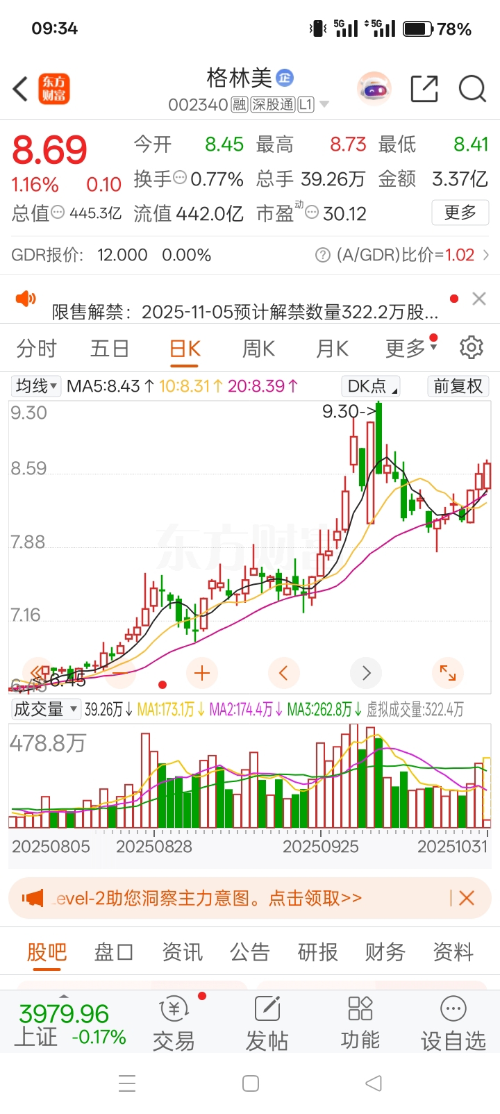 昨天进了格林美的伙伴,今天继续拿好,等待冲高,即可落袋为安,马上周末了,好好休息