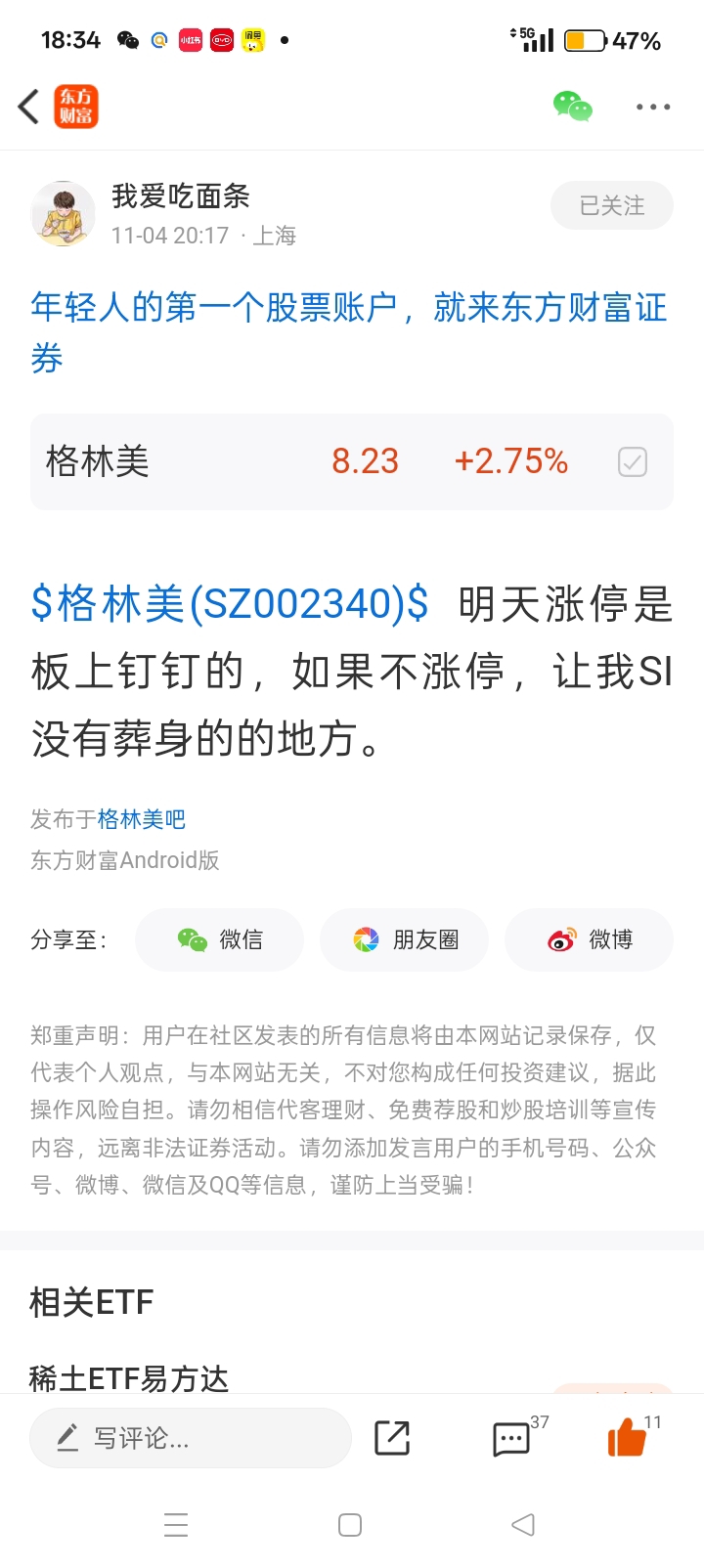 温馨提示: 1.根据《证券法》规定,禁止编造、传播虚假信息或者误导性信息,扰乱证券市场;2.用户在本社区发表的所有资料、言论等仅代表个人观点,与本网站立场无关,不对您构成任何投资建议。用户应基于自己的独立判断,自行决定证券投资并承担相应风险。《东方财富社区管理规定》