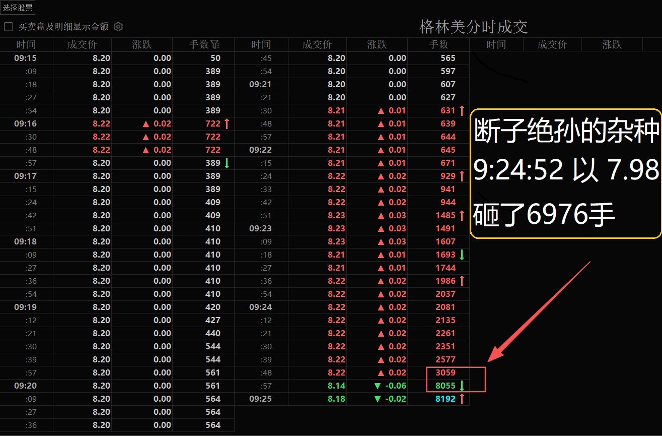 9:24:52 以 7.98 砸了6976手的砸种,把总价期间最低从砸到 8.14,你家会断仔绝子小!