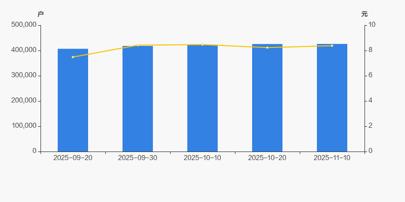 自2025年9月20日以来,公司股东户数连续4期上涨,截至目前增幅为4.73%。2025年9月20日至2025年11月10日区间股价上涨12.03%。