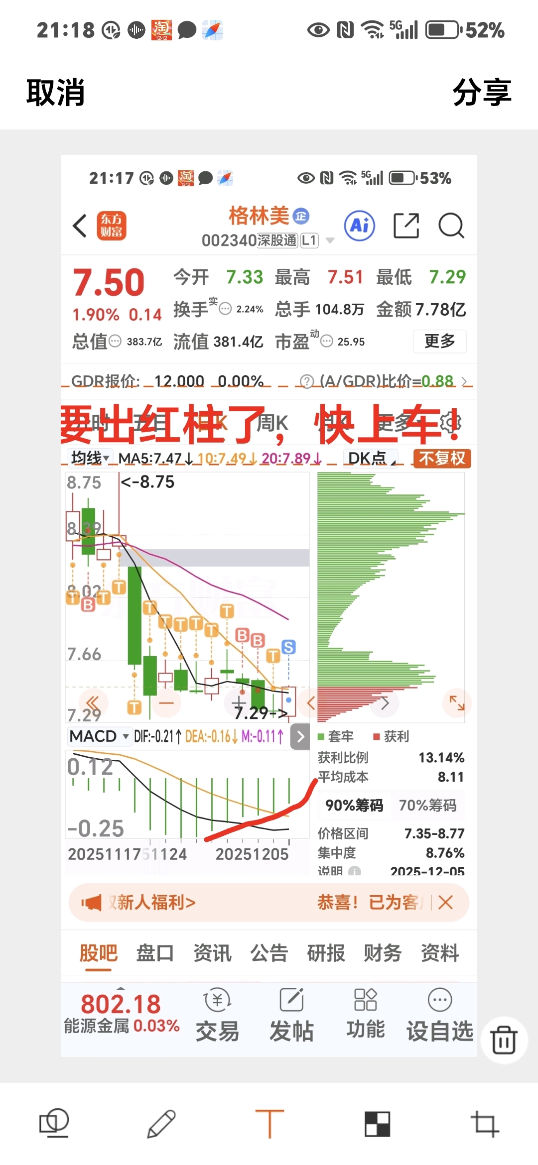 $格林美(SZ002340)$ 绿柱变短…必宁反转!!