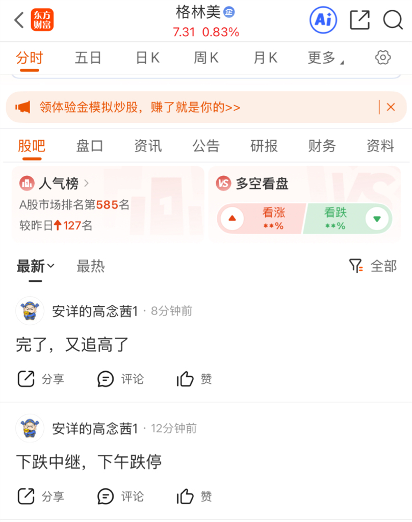 温馨提示: 1.根据《证券法》规定,禁止编造、传播虚假信息或者误导性信息,扰乱证券市场;2.用户在本社区发表的所有资料、言论等仅代表个人观点,与本网站立场无关,不对您构成任何投资建议。用户应基于自己的独立判断,自行决定证券投资并承担相应风险。《东方财富社区管理规定》