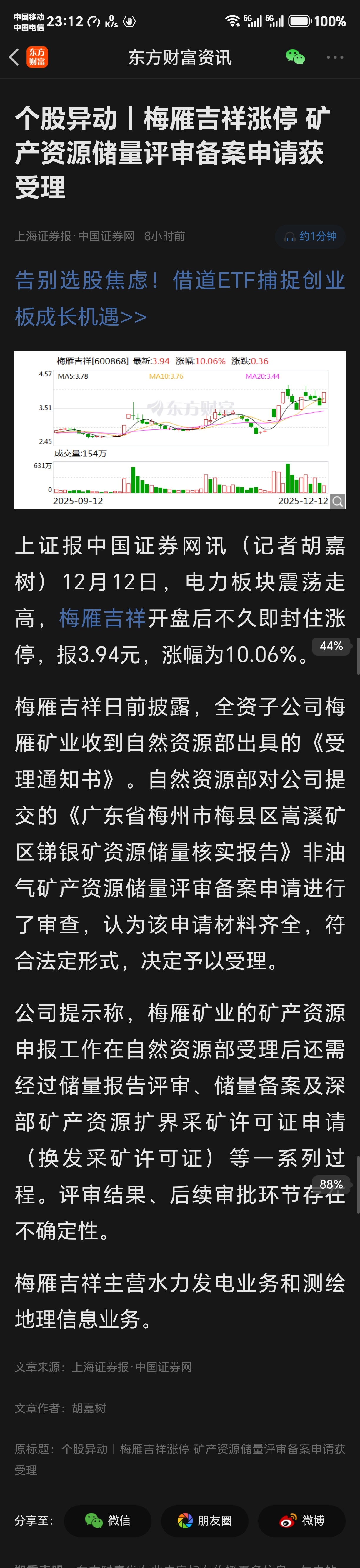 $格林美(SZ002340)$ 600868公司方面表示.锑.银.矿申报审批顺利