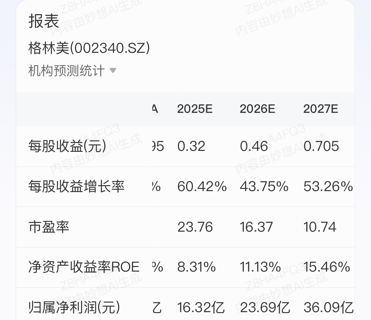 $格林美(SZ002340)$ 这个机构预测有点低呀,2025年才16亿的利润?有色金属涨了这么多。