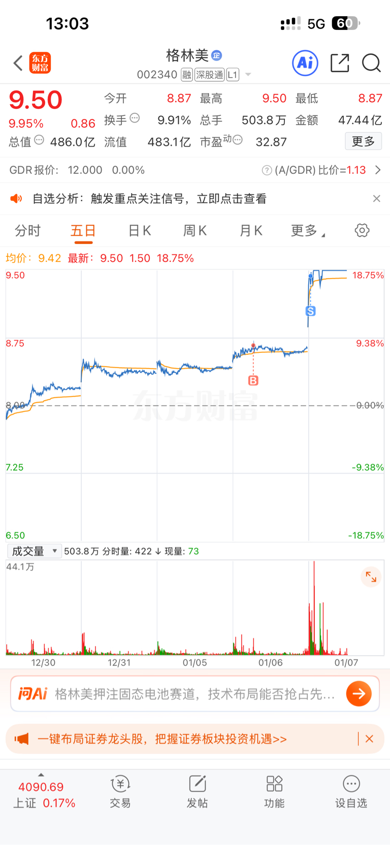 $格林美(SZ002340)$ 一天乐