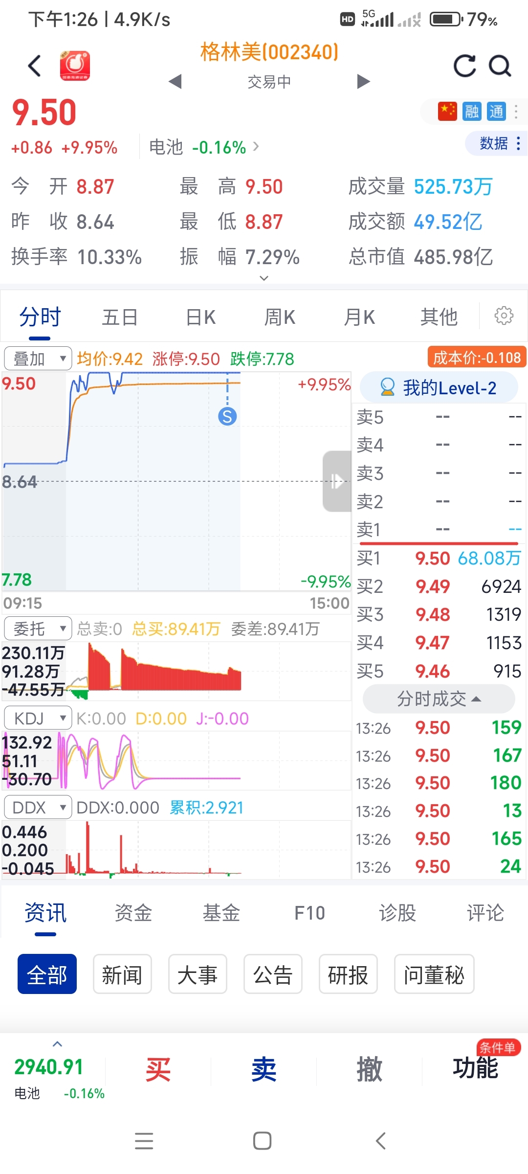 $格林美(SZ002340)$ 先跑一部分!这个量明天不好说!